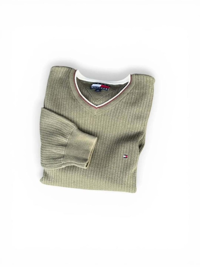 90's~ "TOMMY HILFIGER" V neck cotton knit