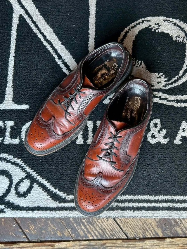 【Coburne Square】 80's Leather Shoes made in USA size , 8 1/2D 26cm コバーンスクエアのロングウィングチップ 分厚いアウトソールに張り出したコバがアメリカ靴らしい重厚感 トップリフトには"O'sulivan"社のラバーが使われてます 古靴好きの方には堪らないディテール ソールの減りもなくコンディションも良いです このコンディションで手に入るなら、かなりお買い得 白シャツとシンプルに合わせるだけでもかっこいい革靴