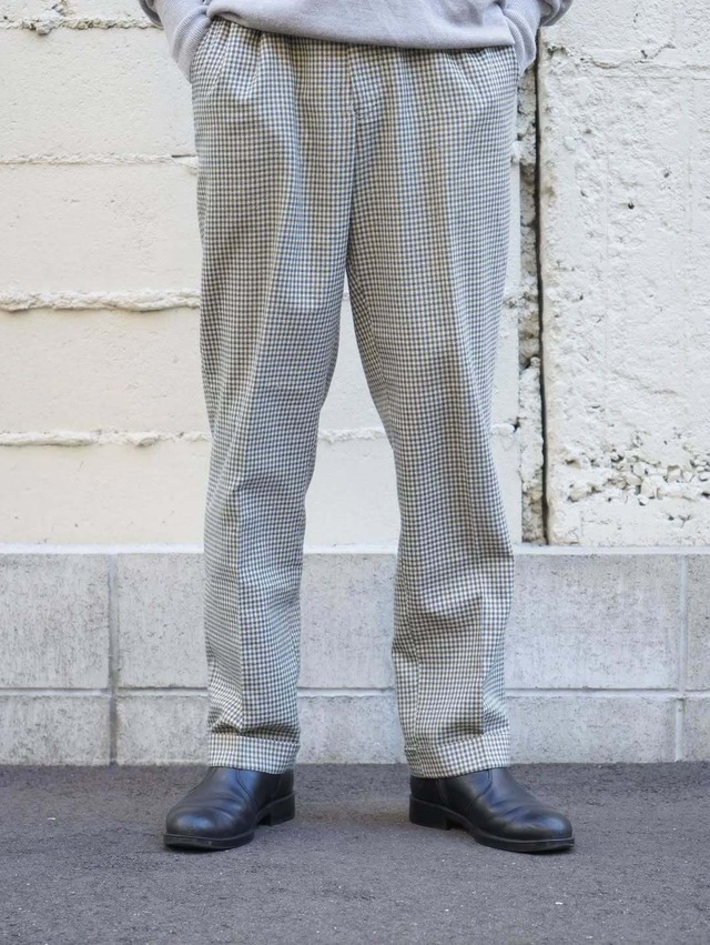 size (ウエスト81cm 股上30cm 股下75.5cm 裾幅19.5cm) チェック柄が小粋なスラックス。 年代特有の若干のテーパードがかかる綺麗なシルエット。 ニットのような生地感で柔らかくストレッチがきいているのも特徴。 一見合わせにくそうですがパジャマパンツと同じ感覚で履けるのでスタイリングもしやすいです。 裾はダブルなので程よくクラシカルで良いバランス。 実寸32×30ほどのゴールデンサイズ。 コンディションも良好なのでお好きな方は是非。 身長175cm着用。 こちらの商品は「Yolo VINTAGE&USED STORE」でのお取り扱いとなります。 住所 : 福岡県北九州市小倉北区京町1-5-15 TEL:093-383-9889 Instagram : yolo_kokura お問い合わせは上記までお気軽にどうぞ。 ※こちらの商品は古着となりますので返品、交換の対応を致しかねます。また、ダメージや汚れ等を理由とした返品、交換も対応致しかねますので、細かな点が気になる方はメール、直接店頭までご連絡の上購入をお願い致します。