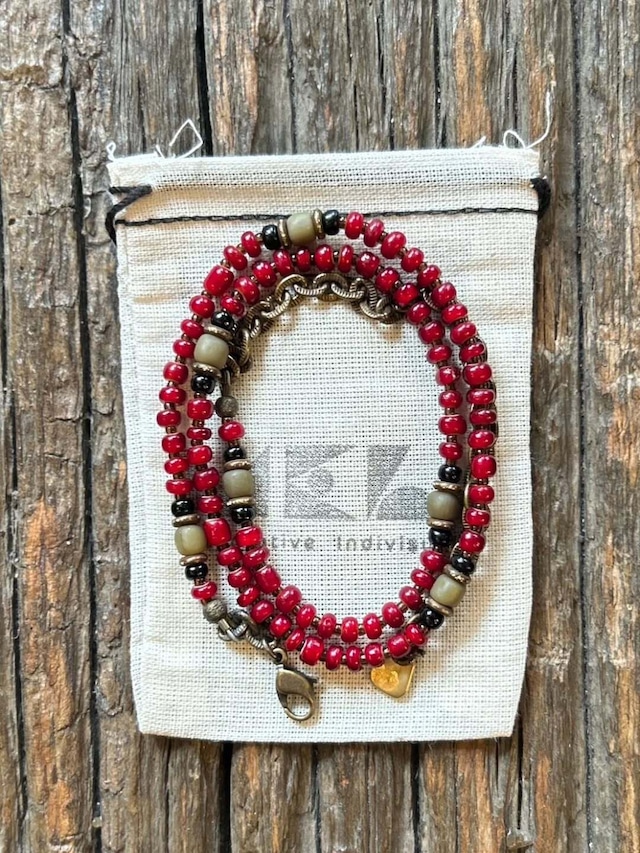 【Meltingpot by Lakeman】 2way Necklace DEEP RED Black × Olive