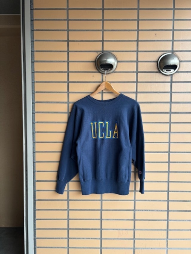 90's "champion" reverse weave sweat shirt UCLA size MEDIUM 肩幅46cm 身幅51cm 袖丈63cm 着丈61cm 全米でも屈指の人気と知名度を誇るUCLA( University of California, Los Angeles) 伝統的なブルー×イエローの配色 ボディはネイビー、落ち着いた色味でファッションにも落とし込みやすいかと。 こちらの商品は「Clothing&Antigues FUN」でのお取り扱いとなります。 TEL:093-953-7994 お問い合わせは上記までお気軽にどうぞ!! ※こちらの商品は返品、交換の対応を致しかねます。また、ダメージや汚れ等を理由とした返品、交換も対応致しかねますので、細かな点が気になる方はメール、直接店頭までご連絡の上購入をお願い致します。