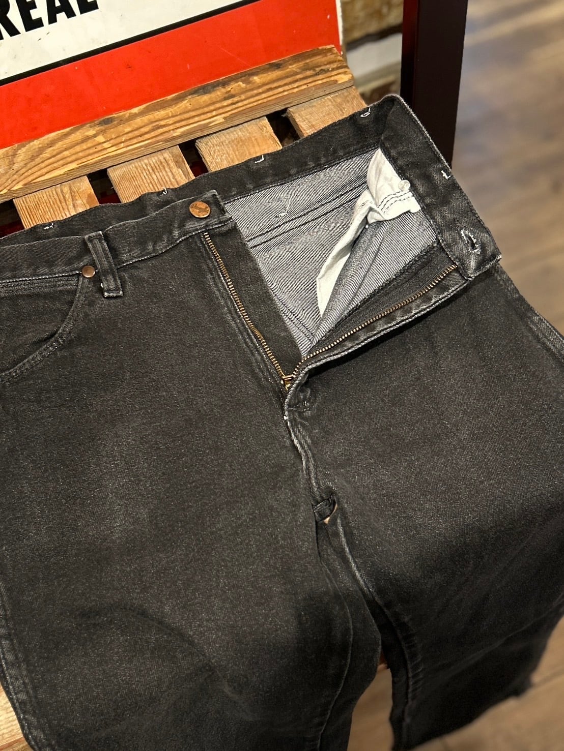 Wranglerの先染めブラックでストレッチ素材、見かける機会は少ないんじゃないかなぁと