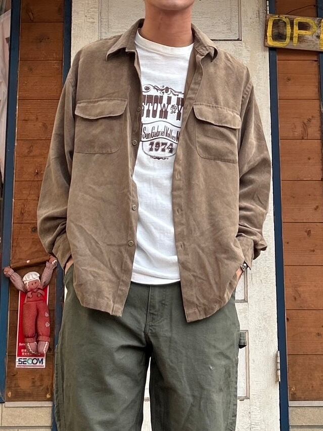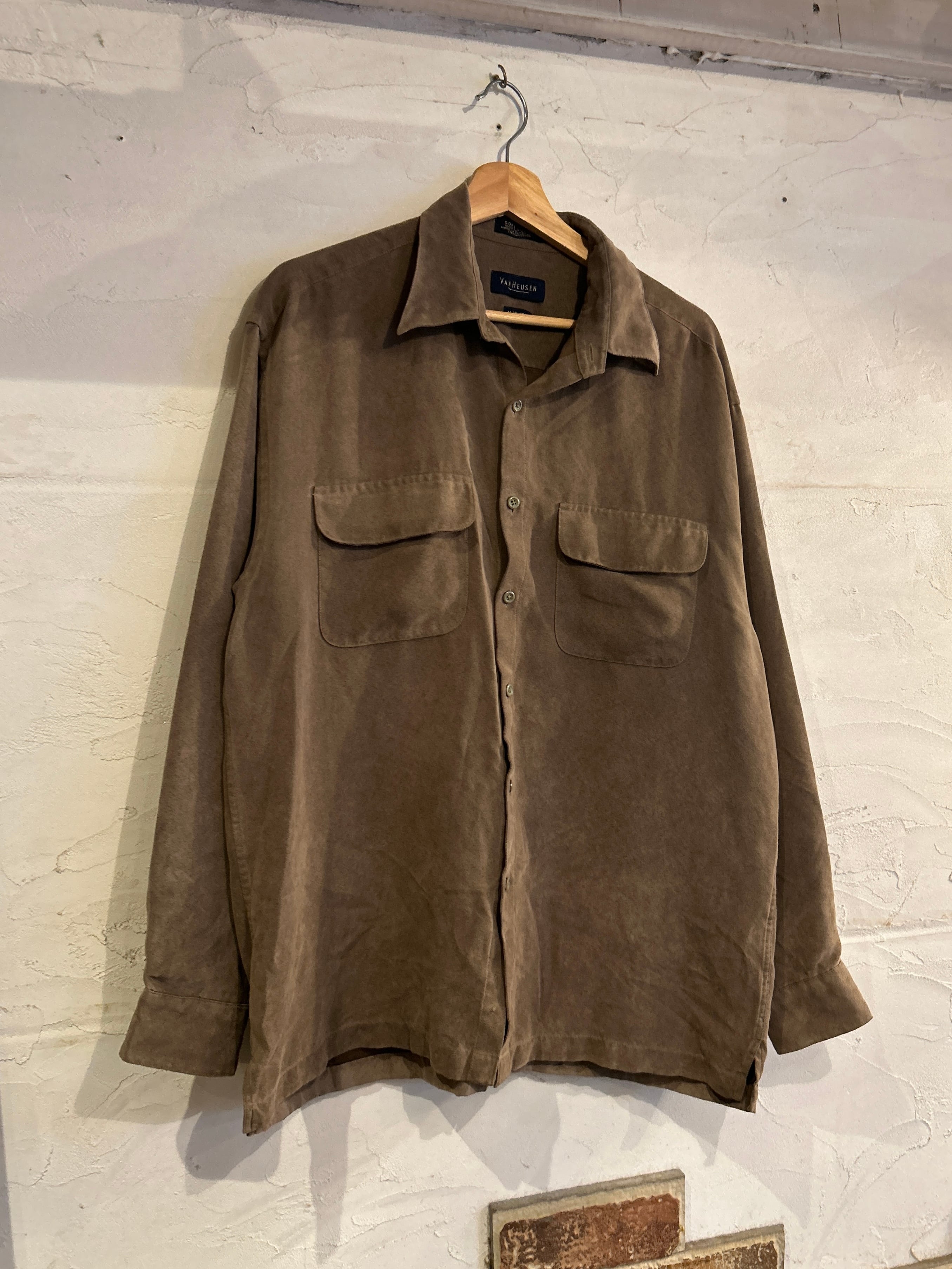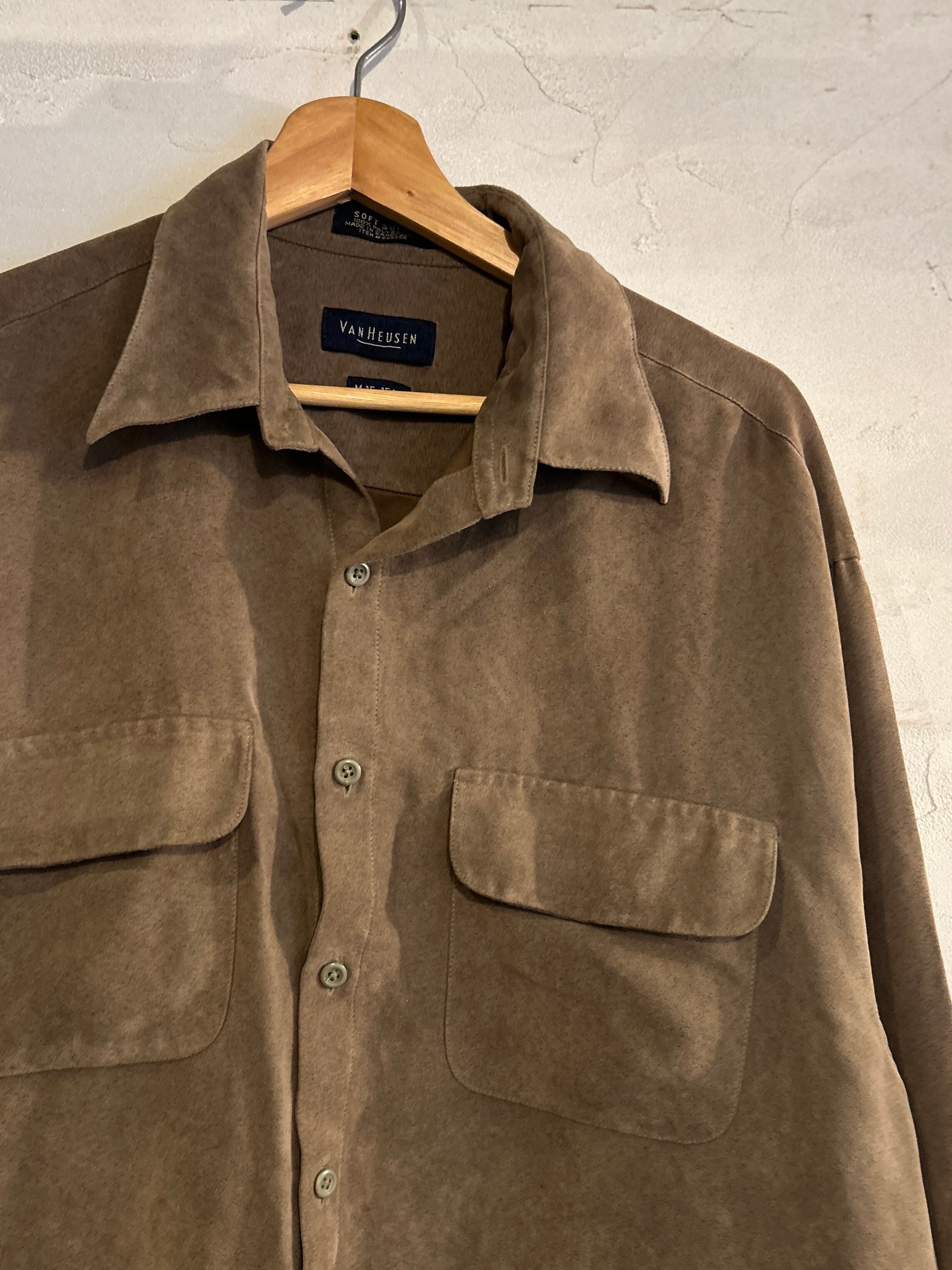~90's "VAN HEUSEN" L/S fake suede shirt / soft suede