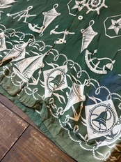 グリーンのボディに、船、イカリ、舵、ベルなど船にまつわるの物がホワイトでデザインされた1枚。