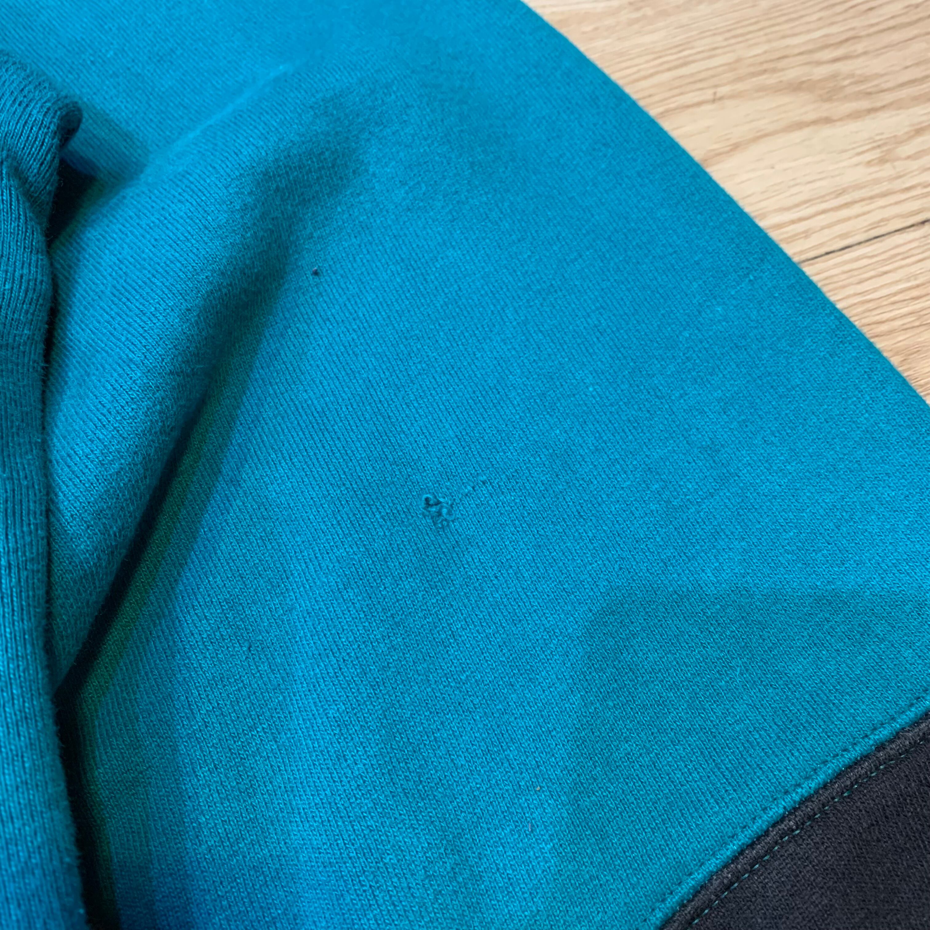 ターコイズブルーベースにボディはパープルの切り替えし、更にスリーブはブラック切り替えしと3色使われているマルチカラーの珍リバースウィーブ。