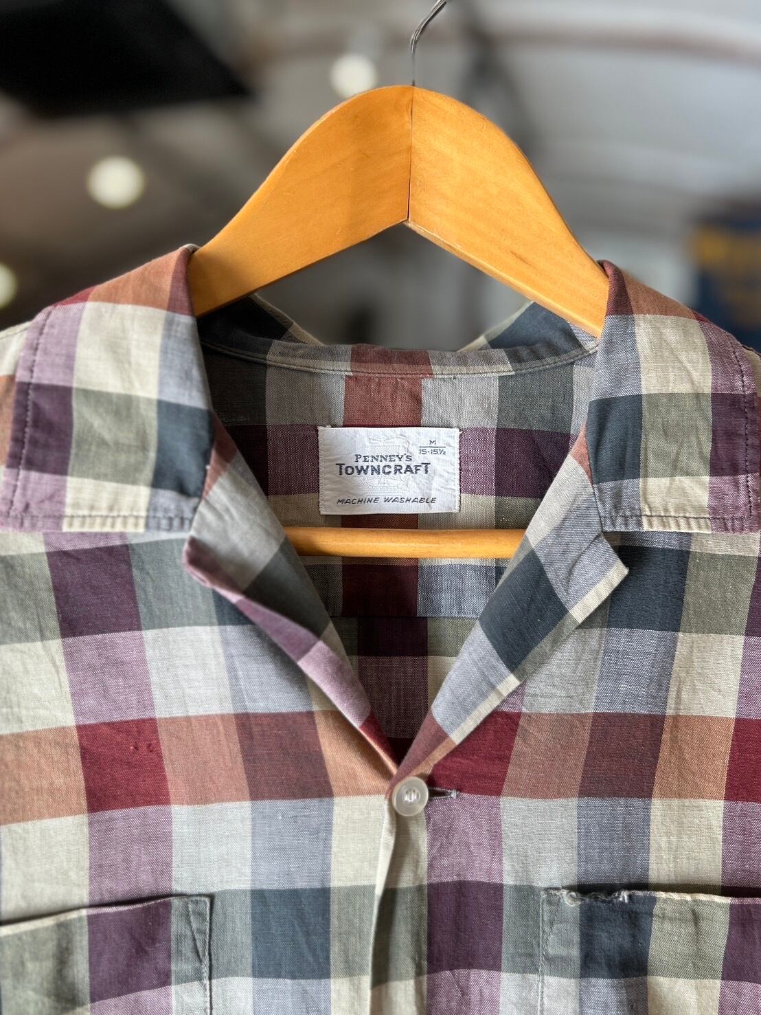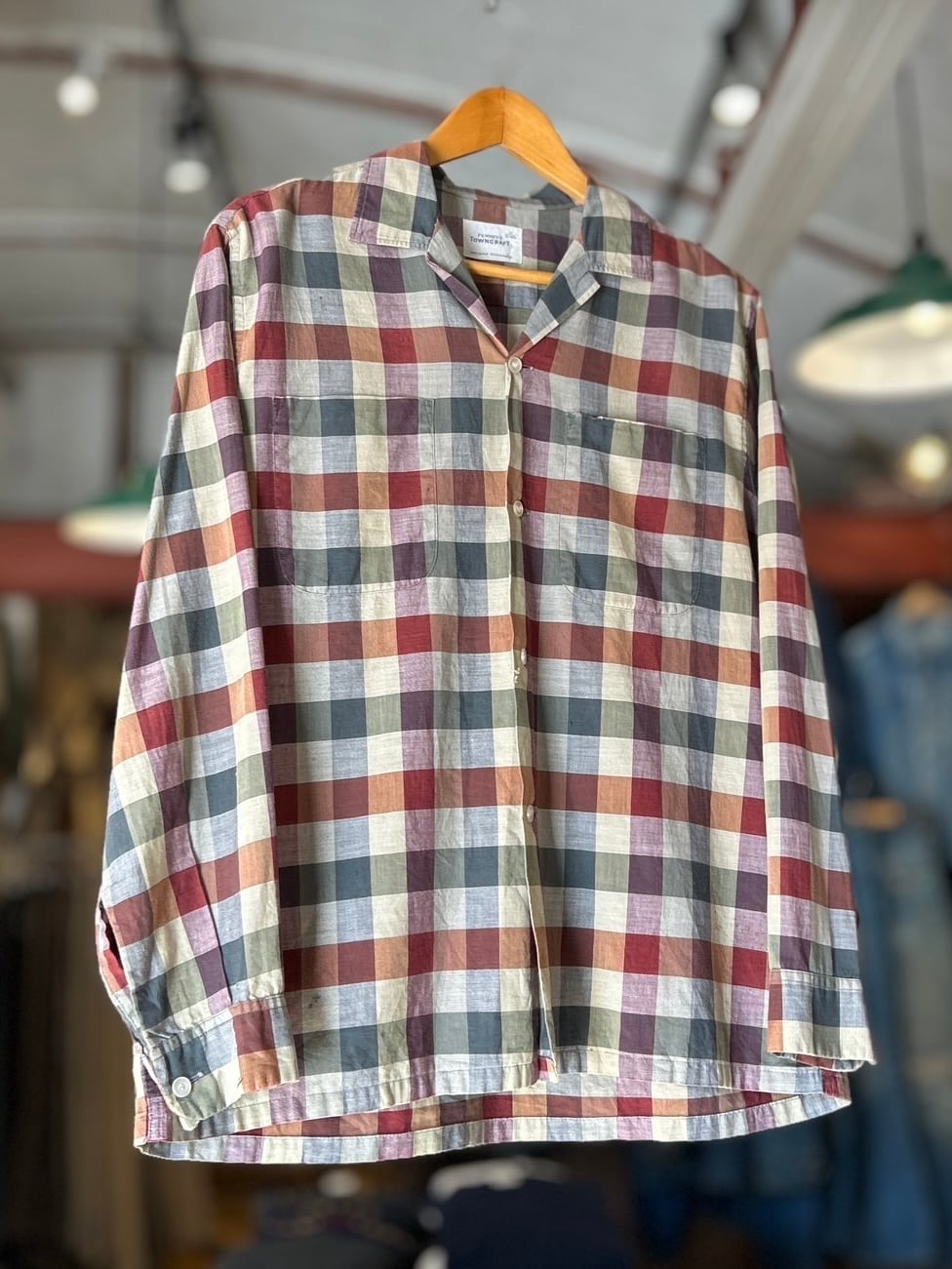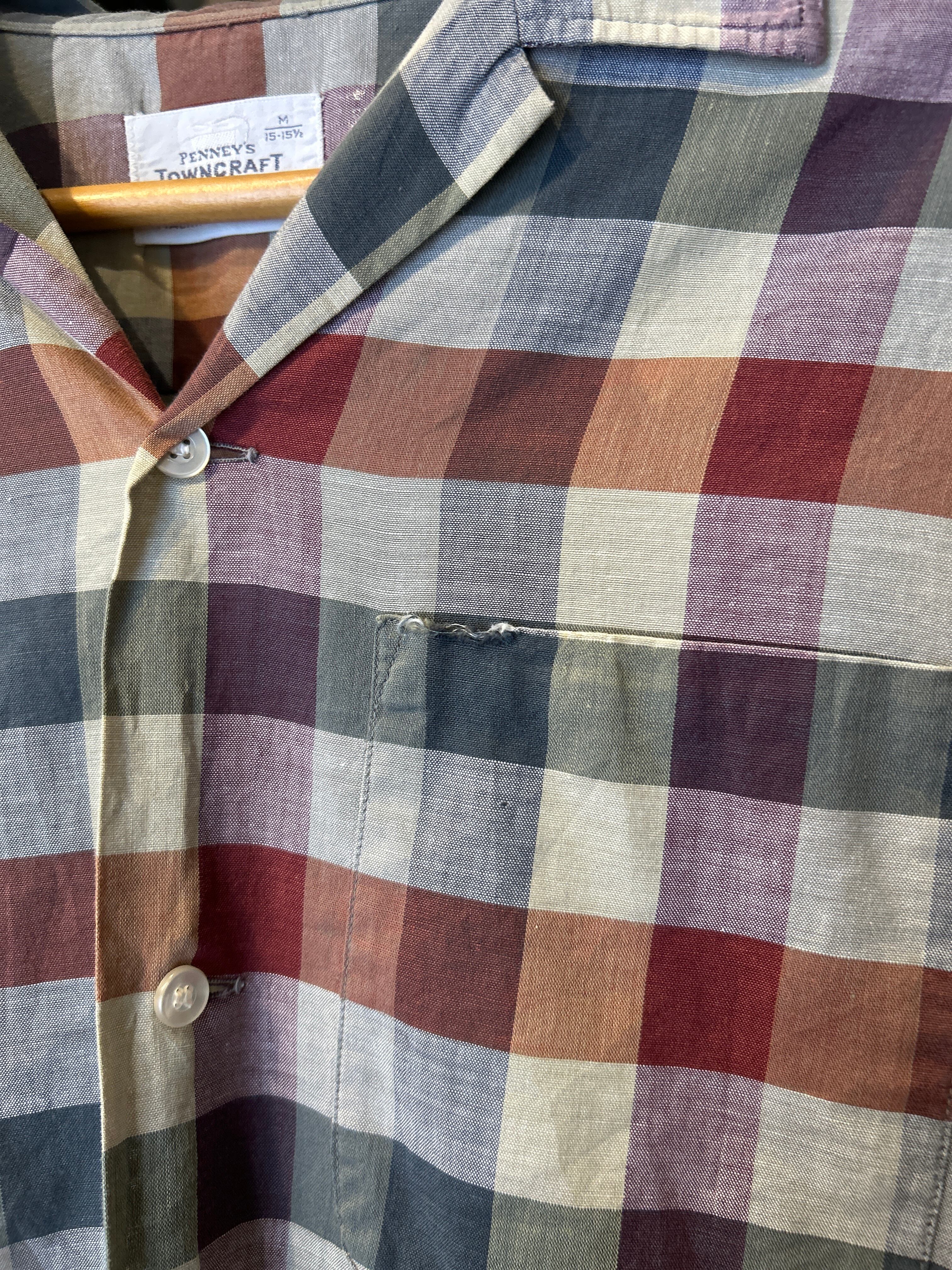 ~60's "TOWN CRAFT" Open Collar Cotton Check Shirt