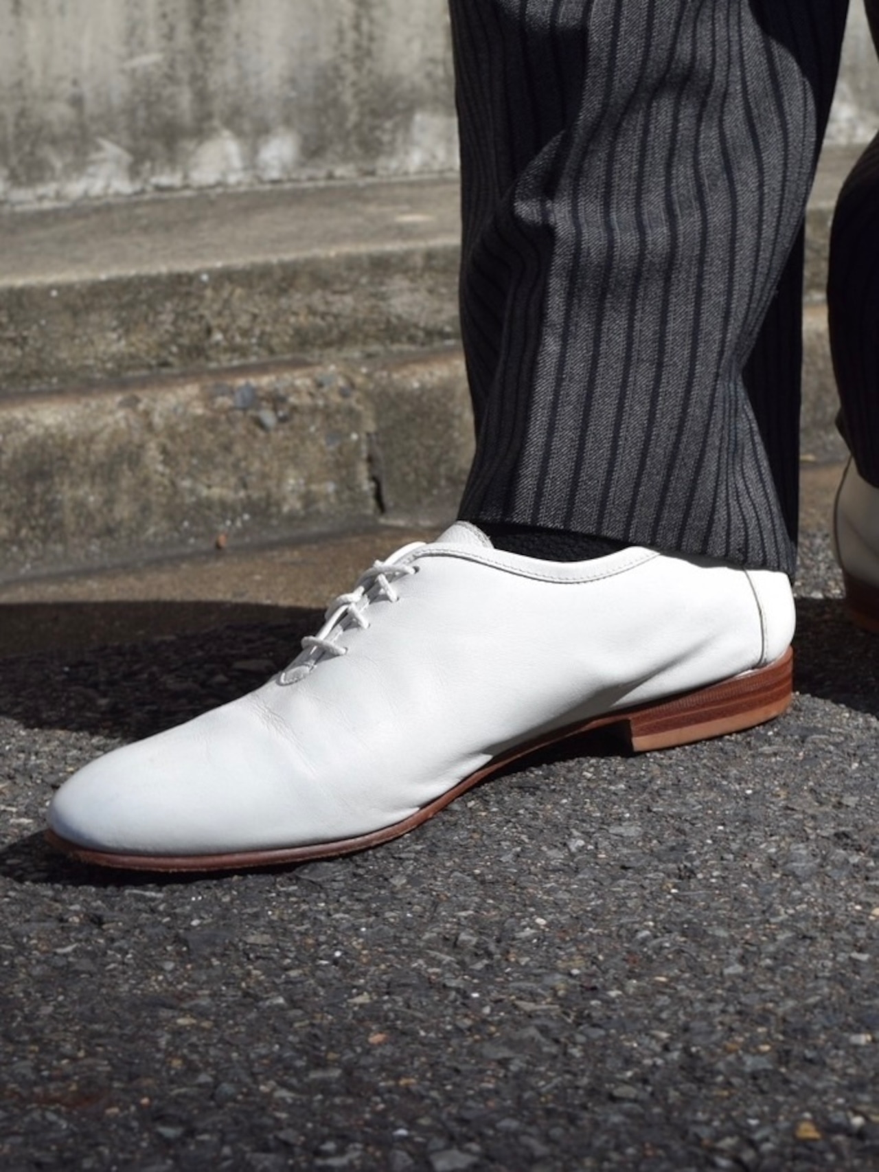 意外と見かける機会の少ないホワイトのレザーシューズ