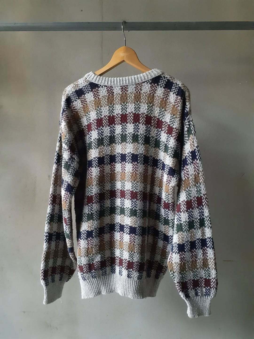 チェック柄がかわいいニット。