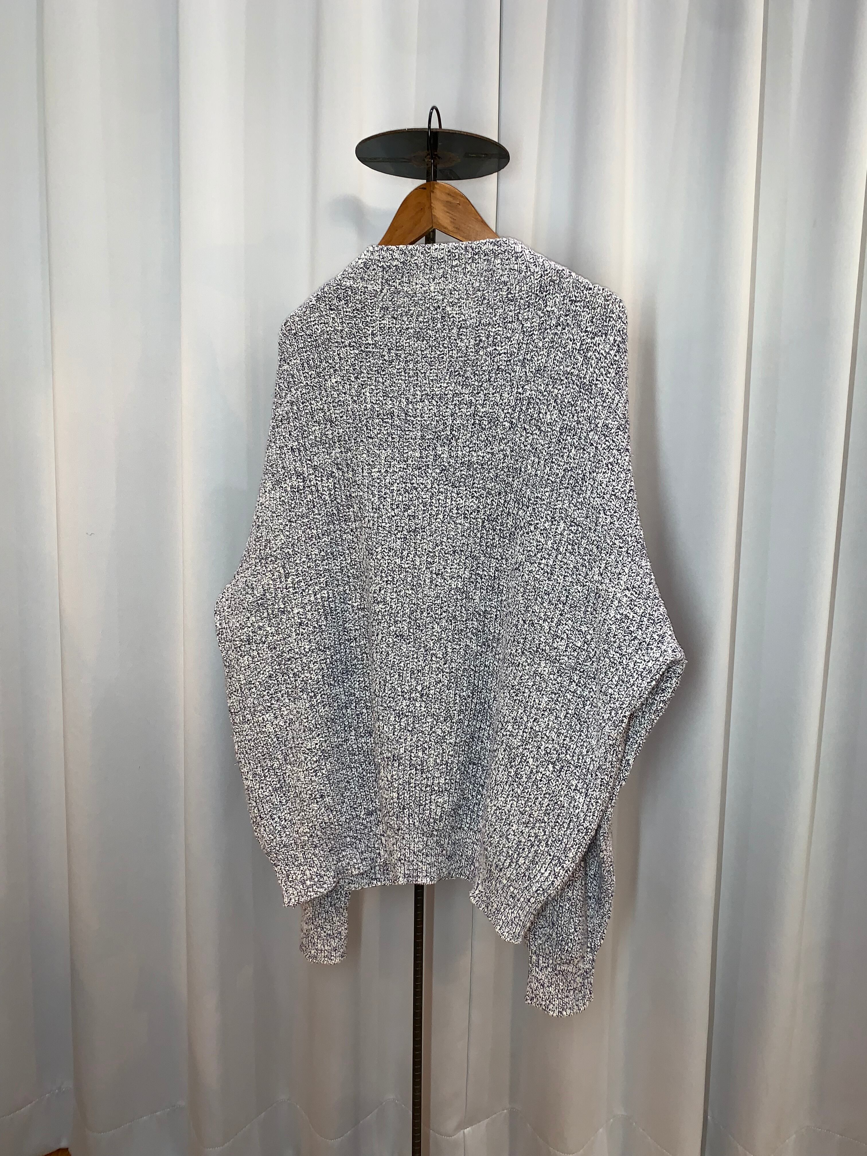 白と黒の糸の編みで青みあるグレーのような見た目