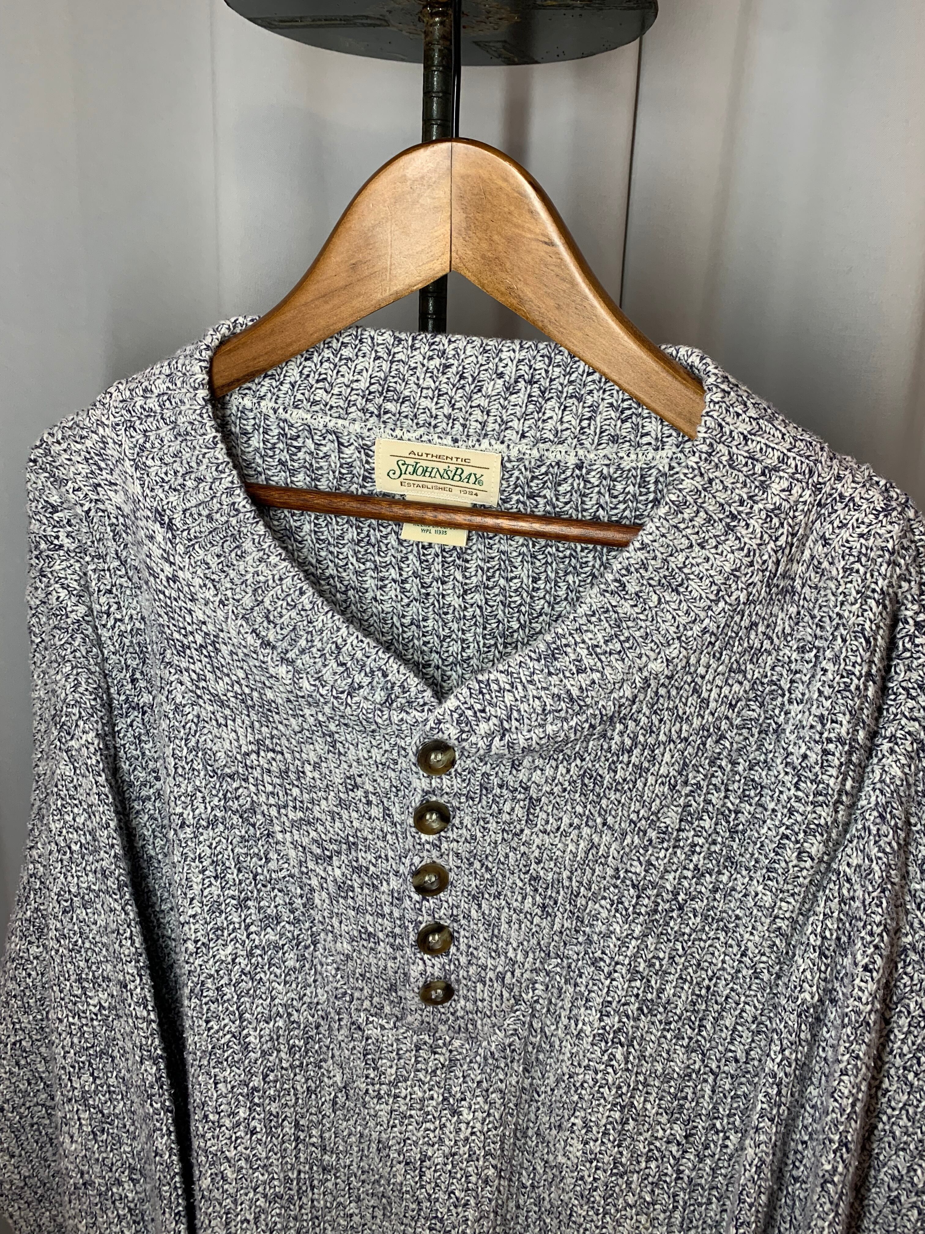 90's " St John's Bay" all cotton knit / Henley neck / Made in USA