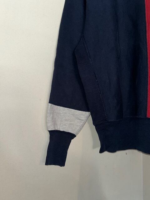 中心部はネイビー×レッド、袖はネイビー×グレーの2色