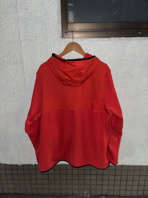 薄手のフリースに、肩からフードにかけてナイロン生地の切り替え。