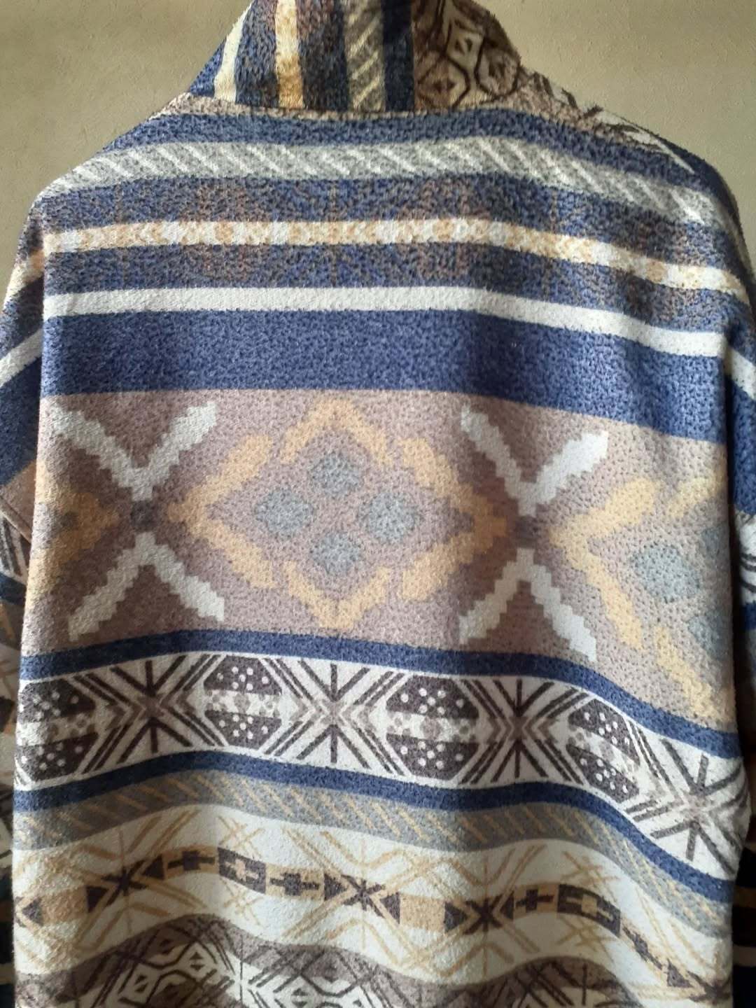表はネイティブパターン、裏は無地のネイビー。