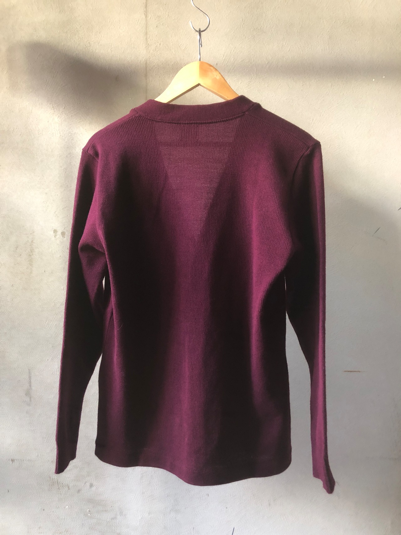 深みのあるワインレッドカラーが魅力のカーディガン。