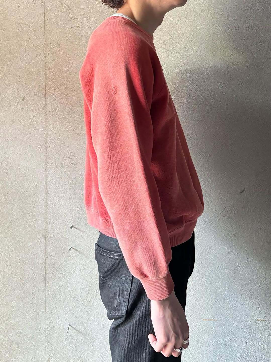 フェードしたレッドカラーが魅力のヴィンテージスウェット。
