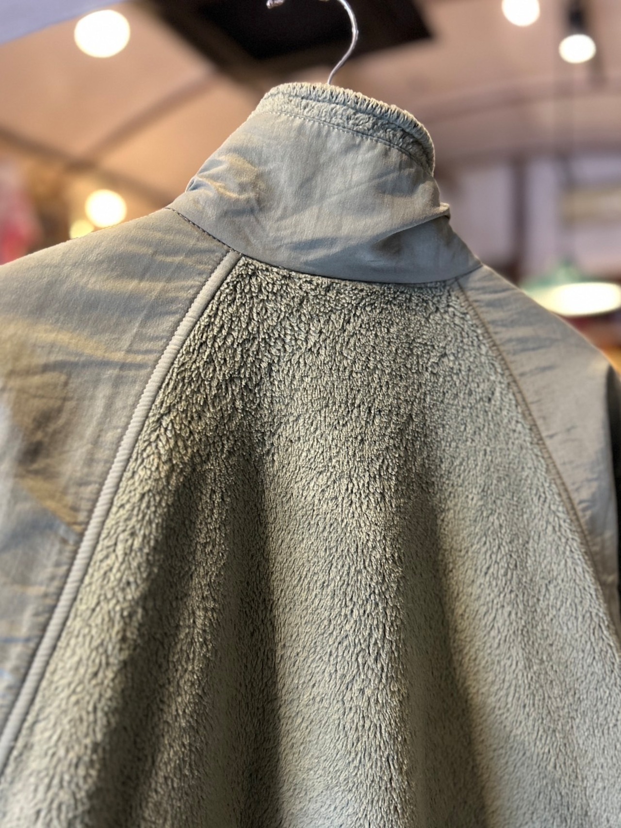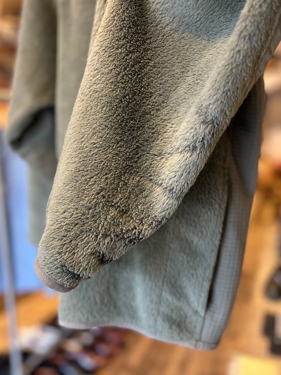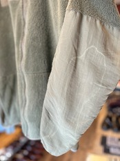 左袖のナイロン部分にシミ、袖先にフリースのダメージございます。