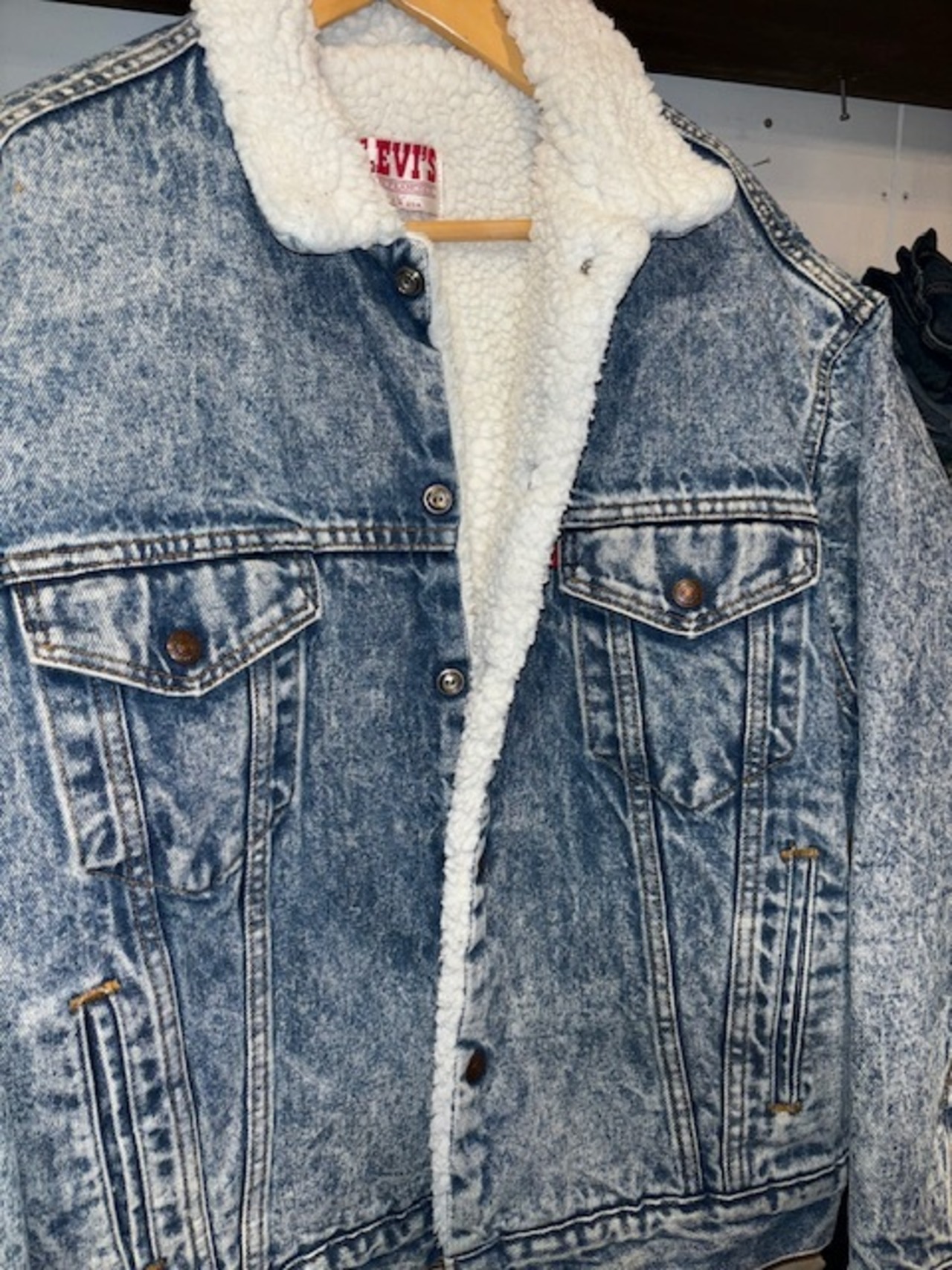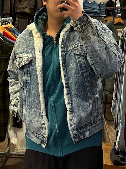 80's “Levi's" denim boa jacket chemical wash made in USA