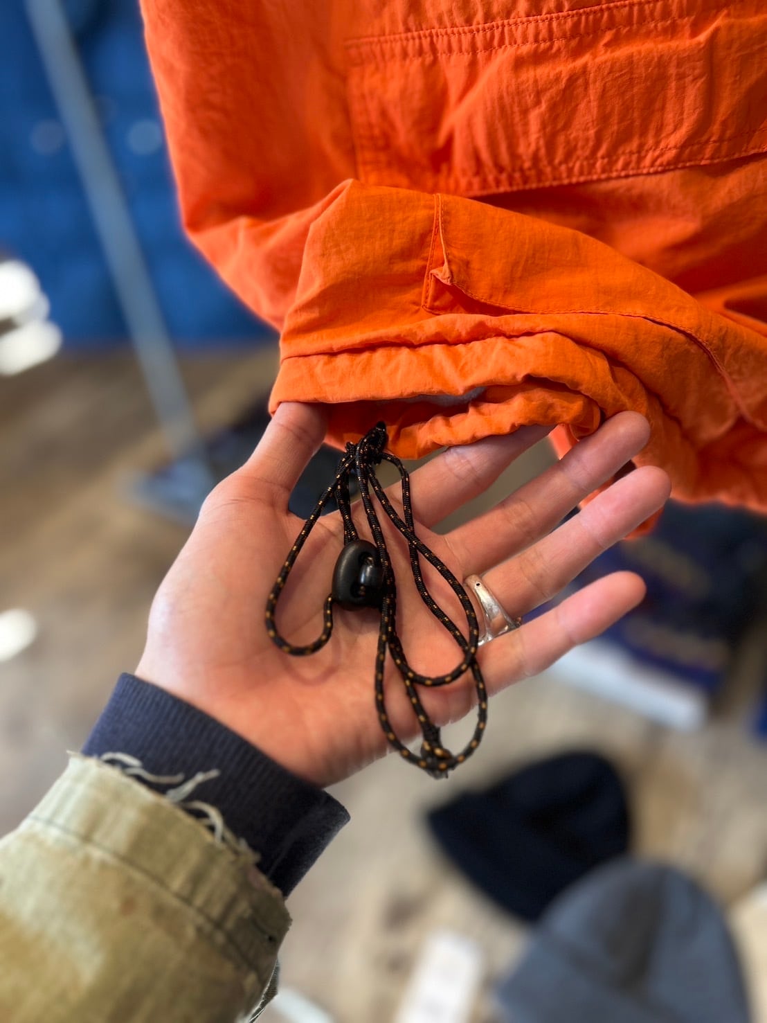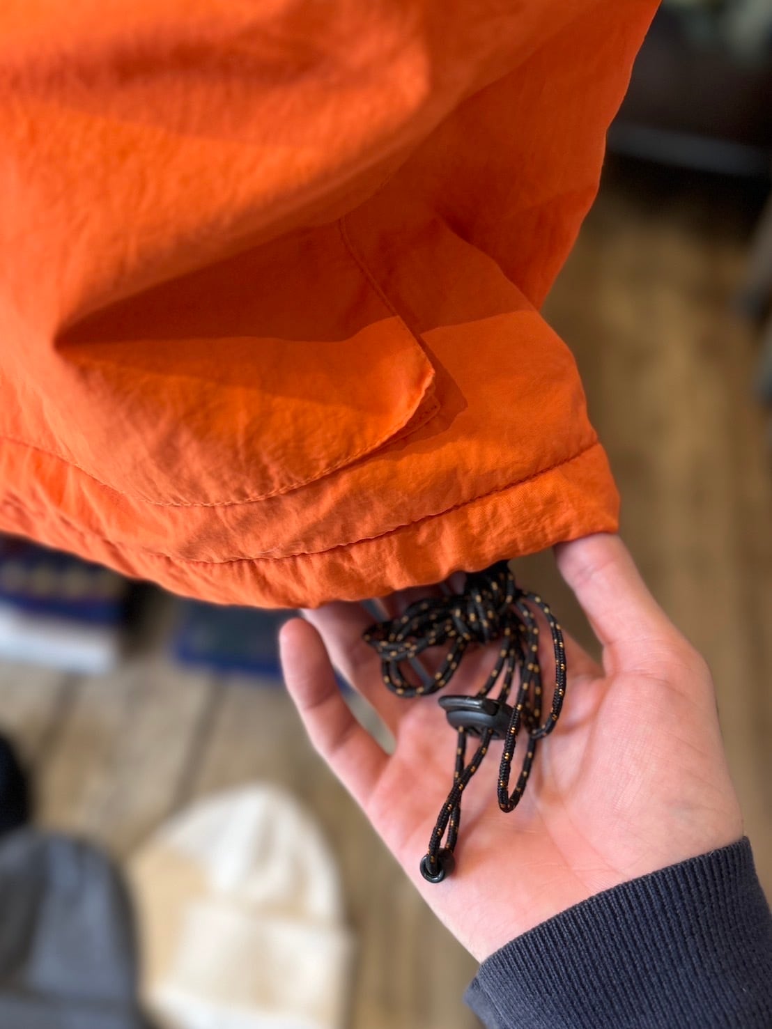 裾の両サイドにはドローコード付き