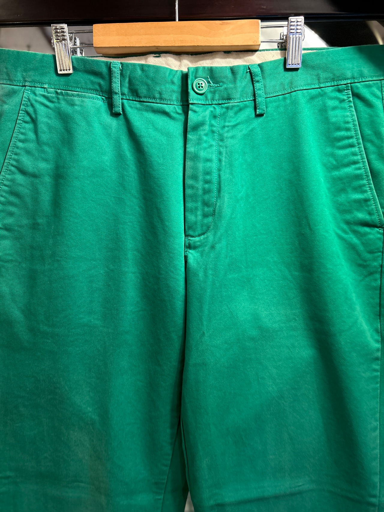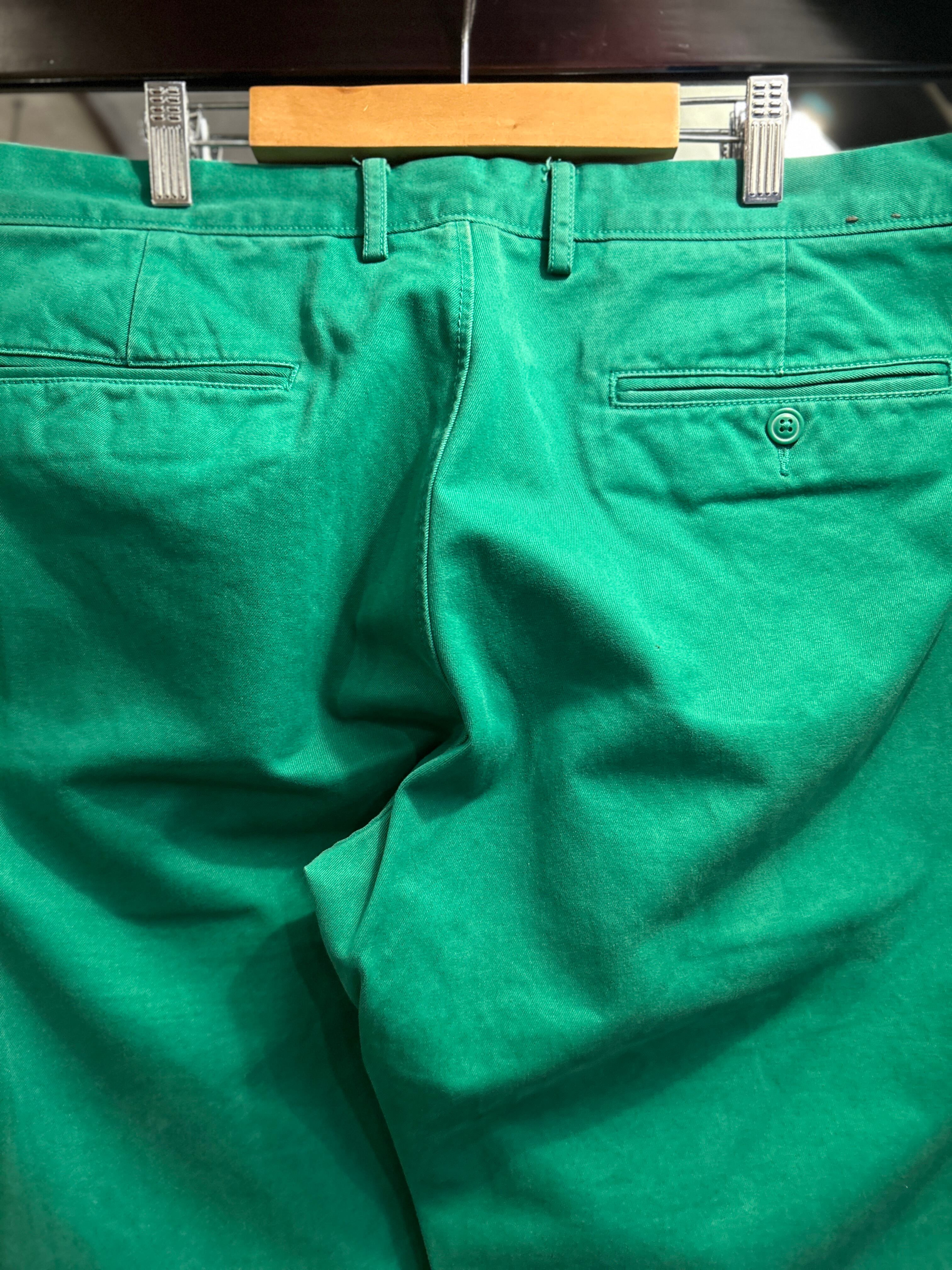 チノパンらしいベージュやネイビーではなく、発色のいいグリーン