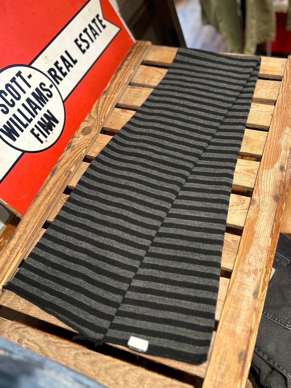 アクリル100%のボーダーマフラー