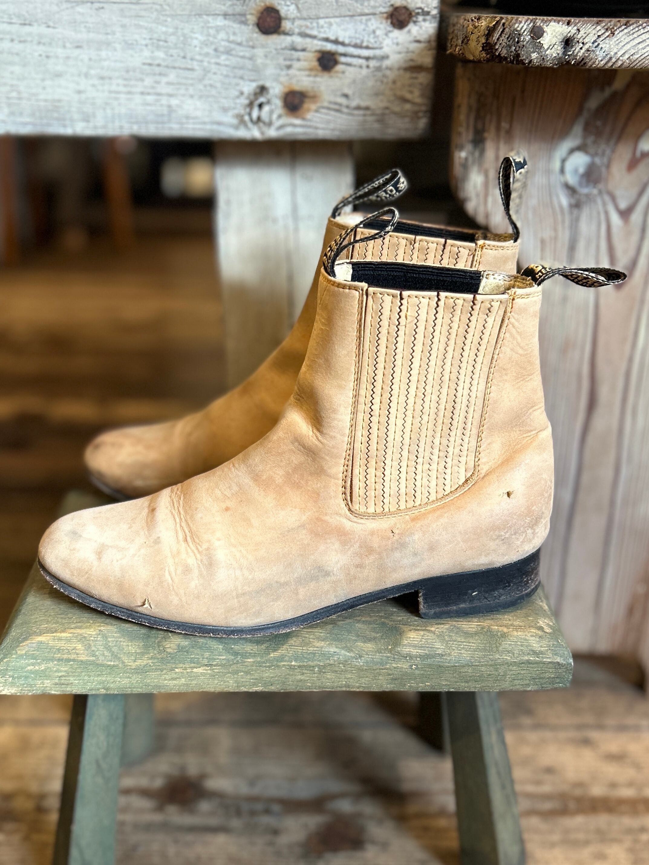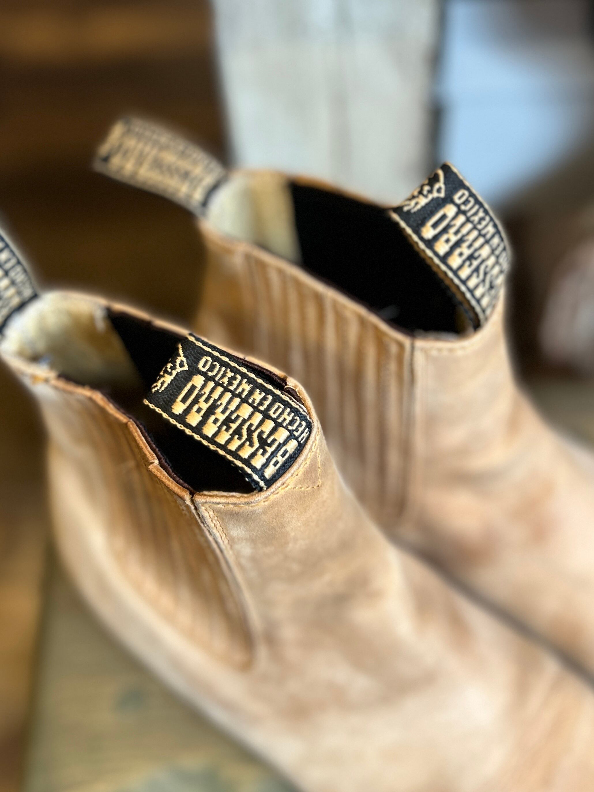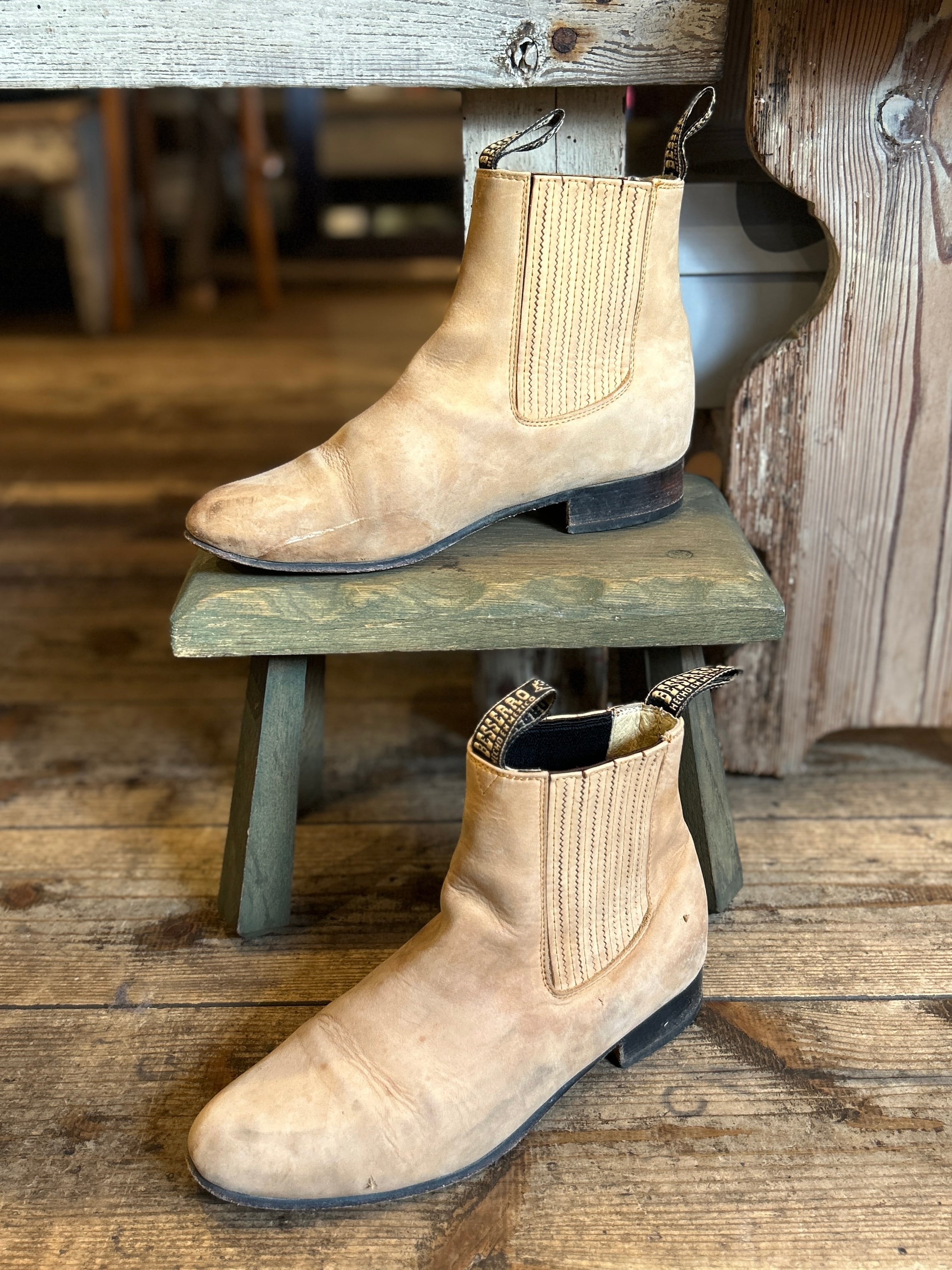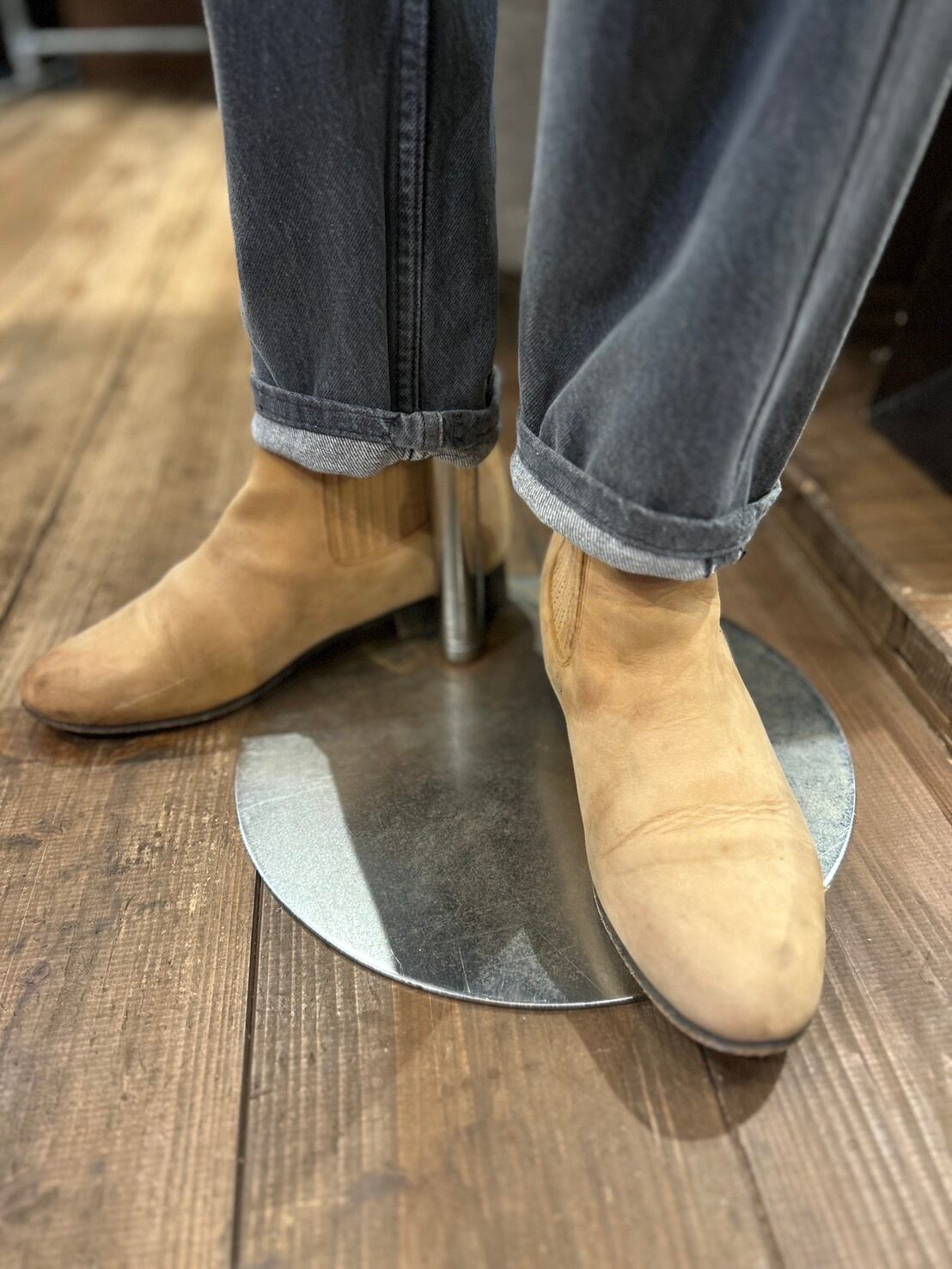 ベージュレザーのサイドゴアブーツ