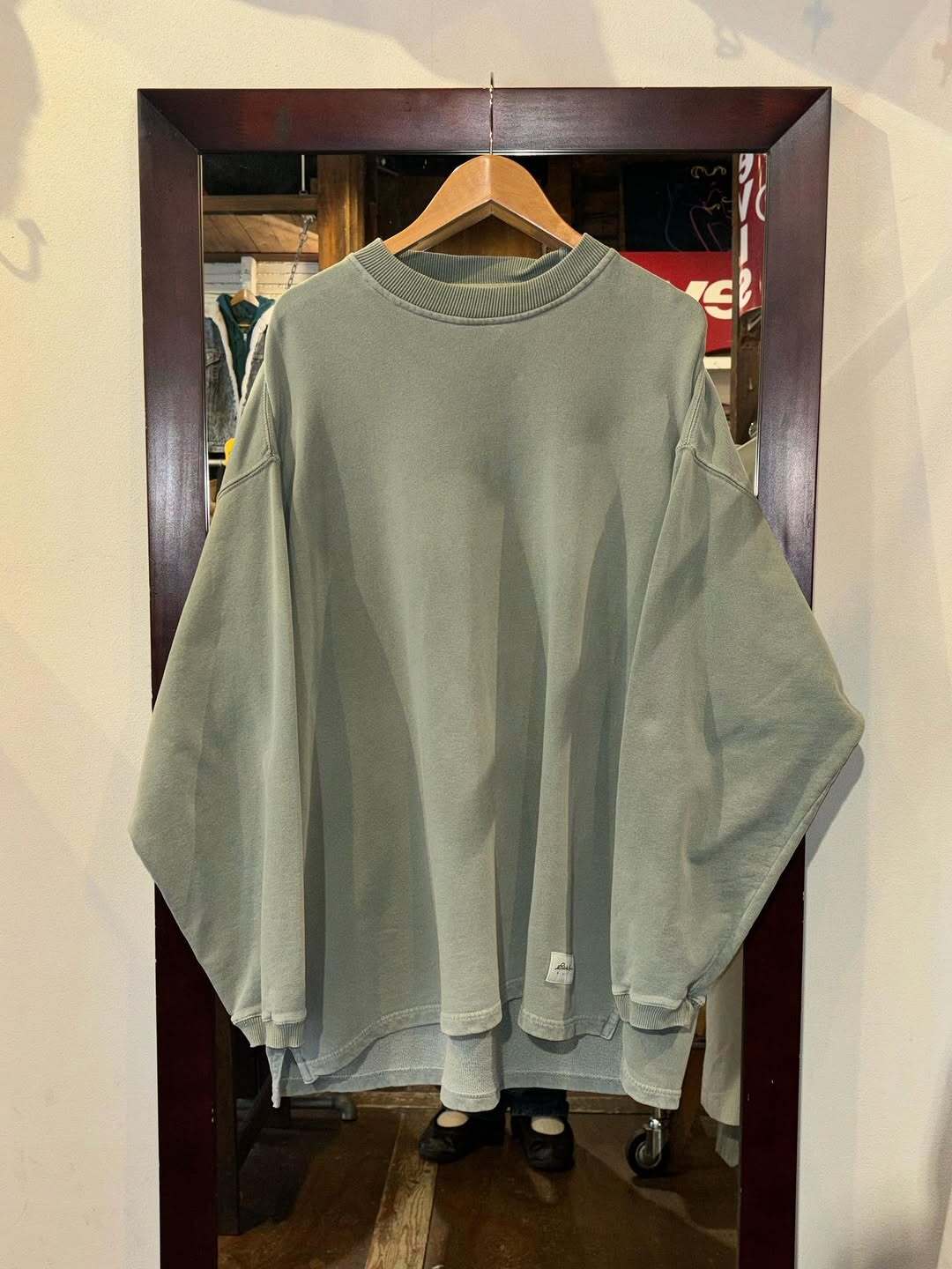 裾にリブは無くスリット入り、ラウンドした裾が今っぽくてロンTっぽいシルエット