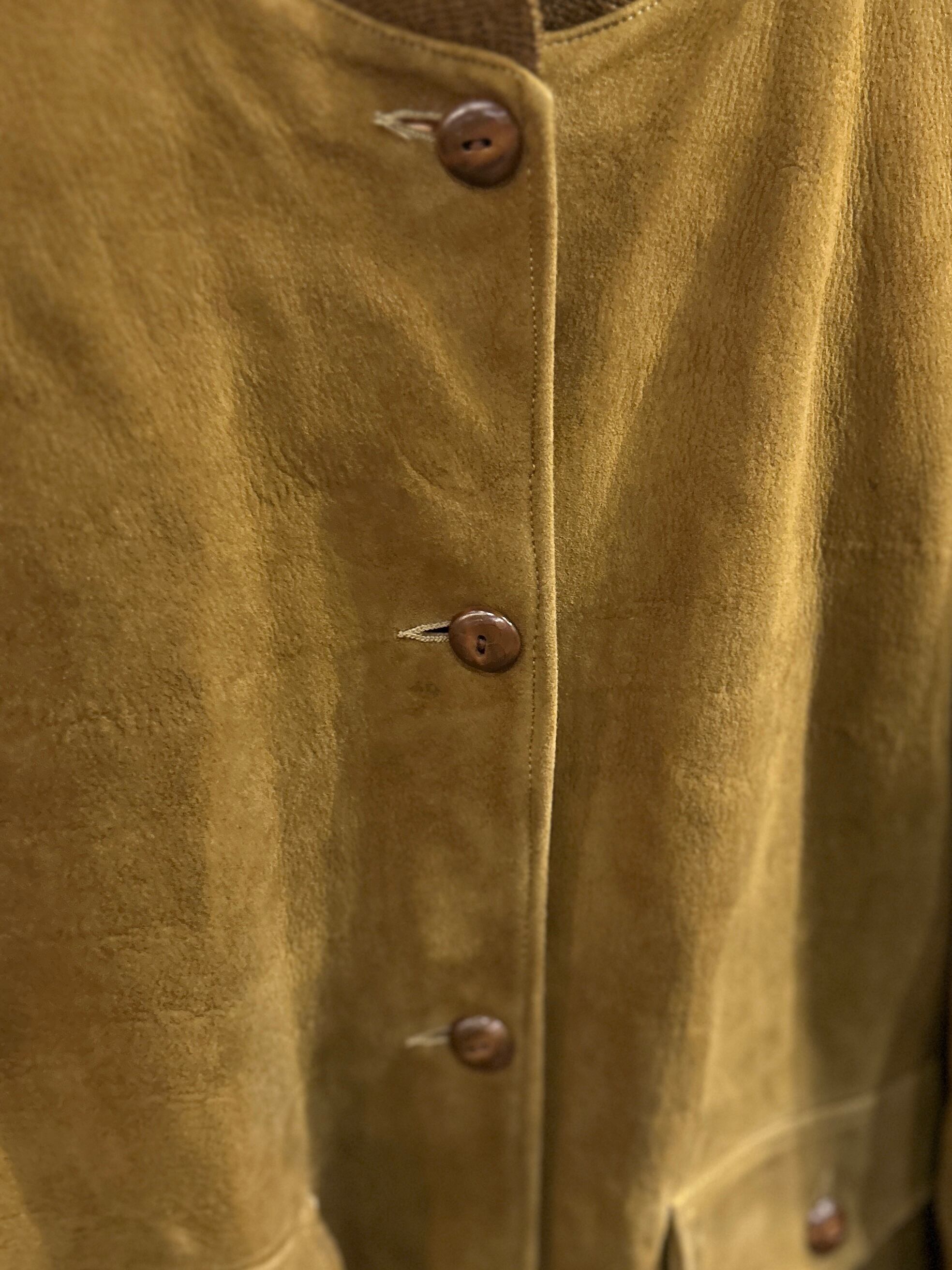 ブラウンのヌバック地に同系色のリブとボタン