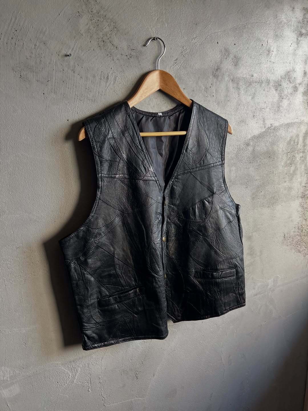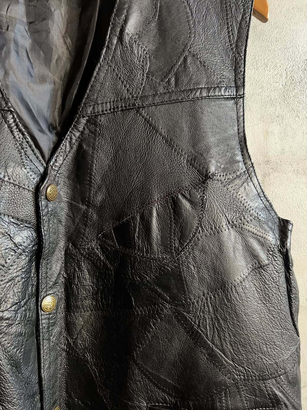 90年代頃のリアルレザー、パッチワークベスト。