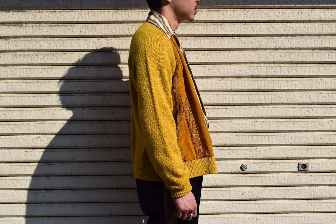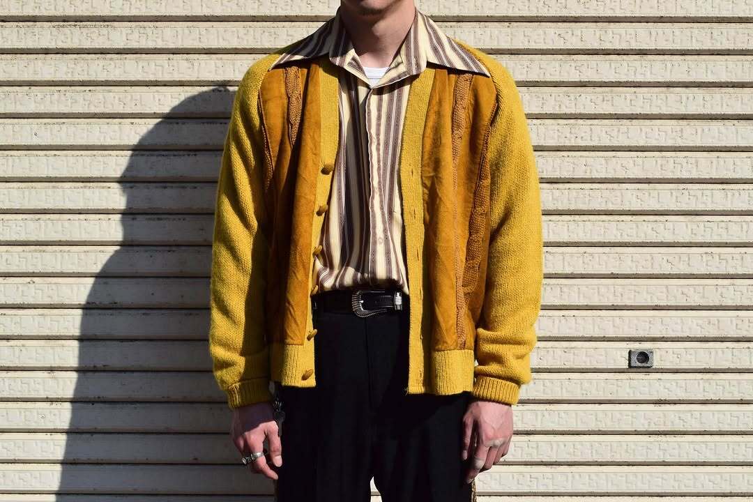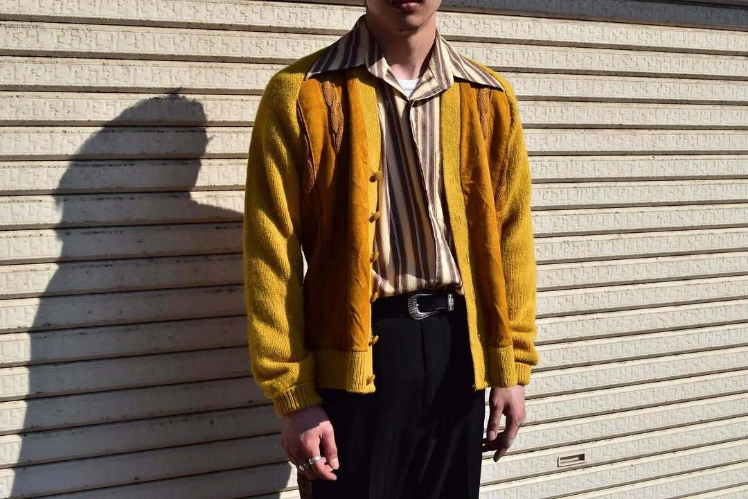 ~60's "2PLY" Wool × Suede Design Cardigan