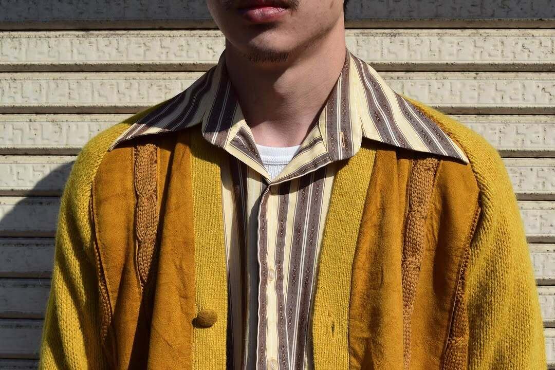 60年代頃のウール×スエードの切り替えカーディガン