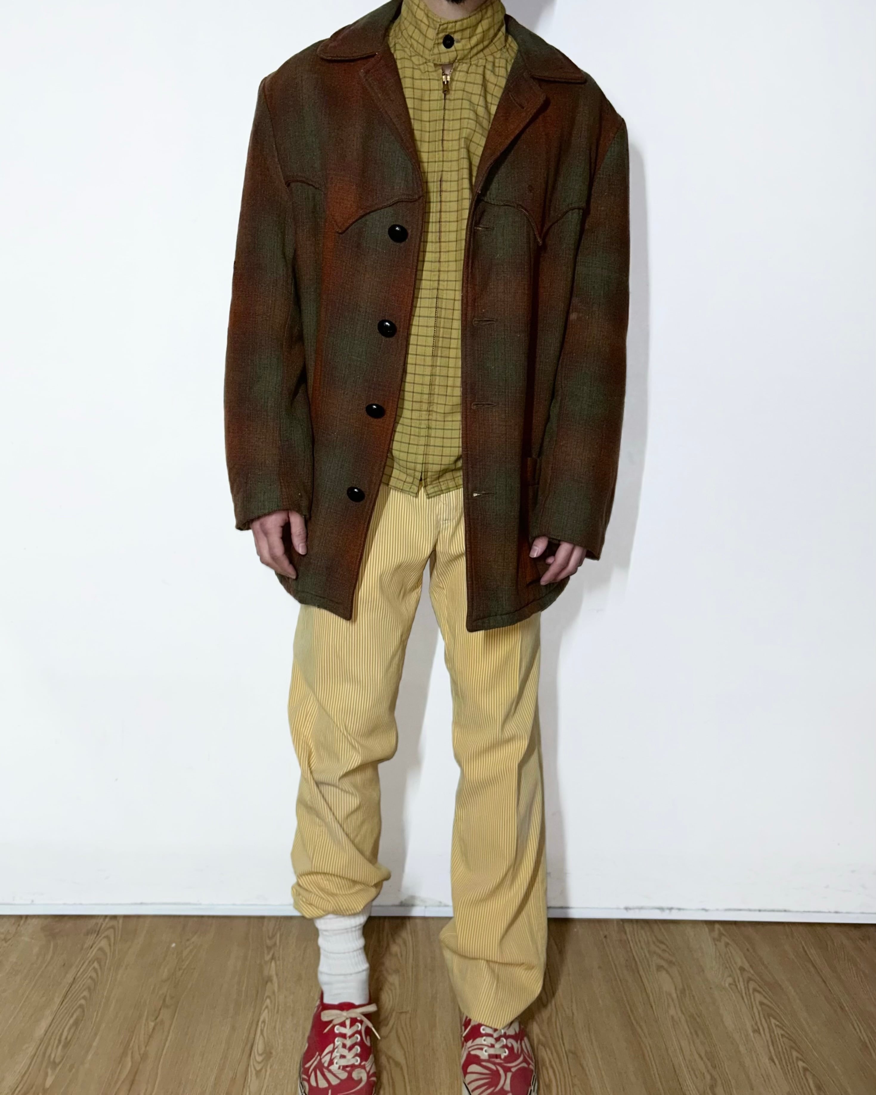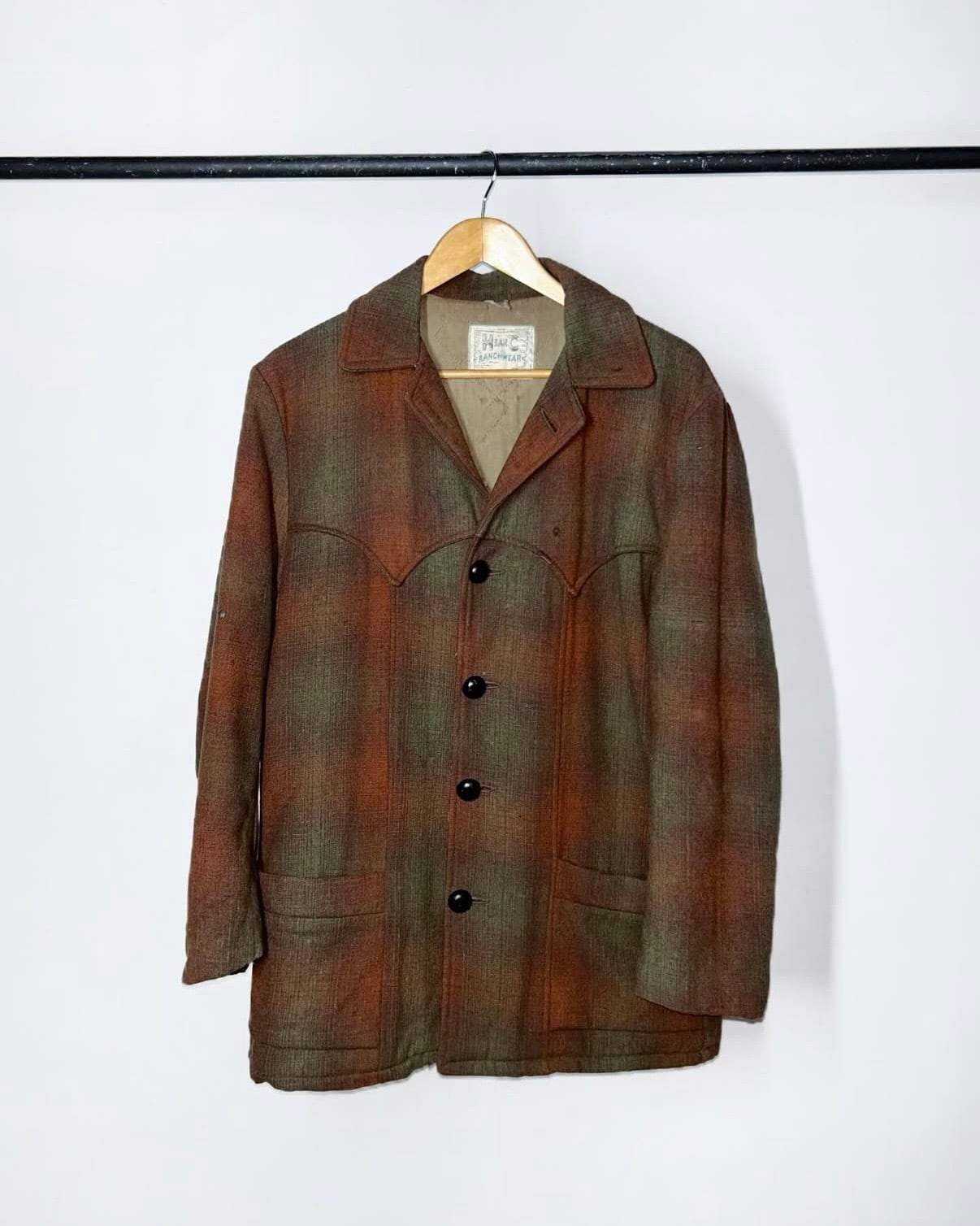 50's "H bar C" wool western jacket・Ombre Check!!