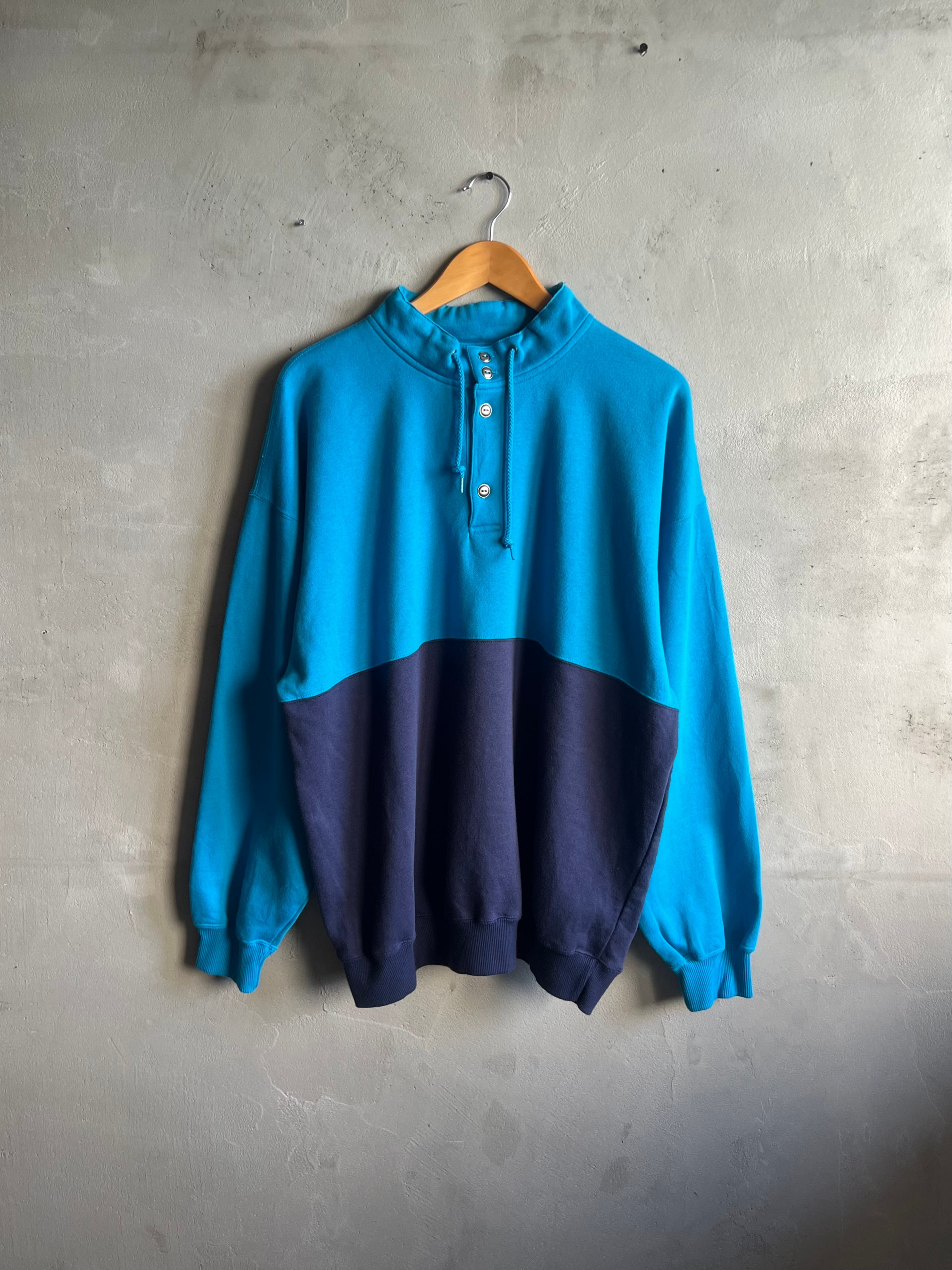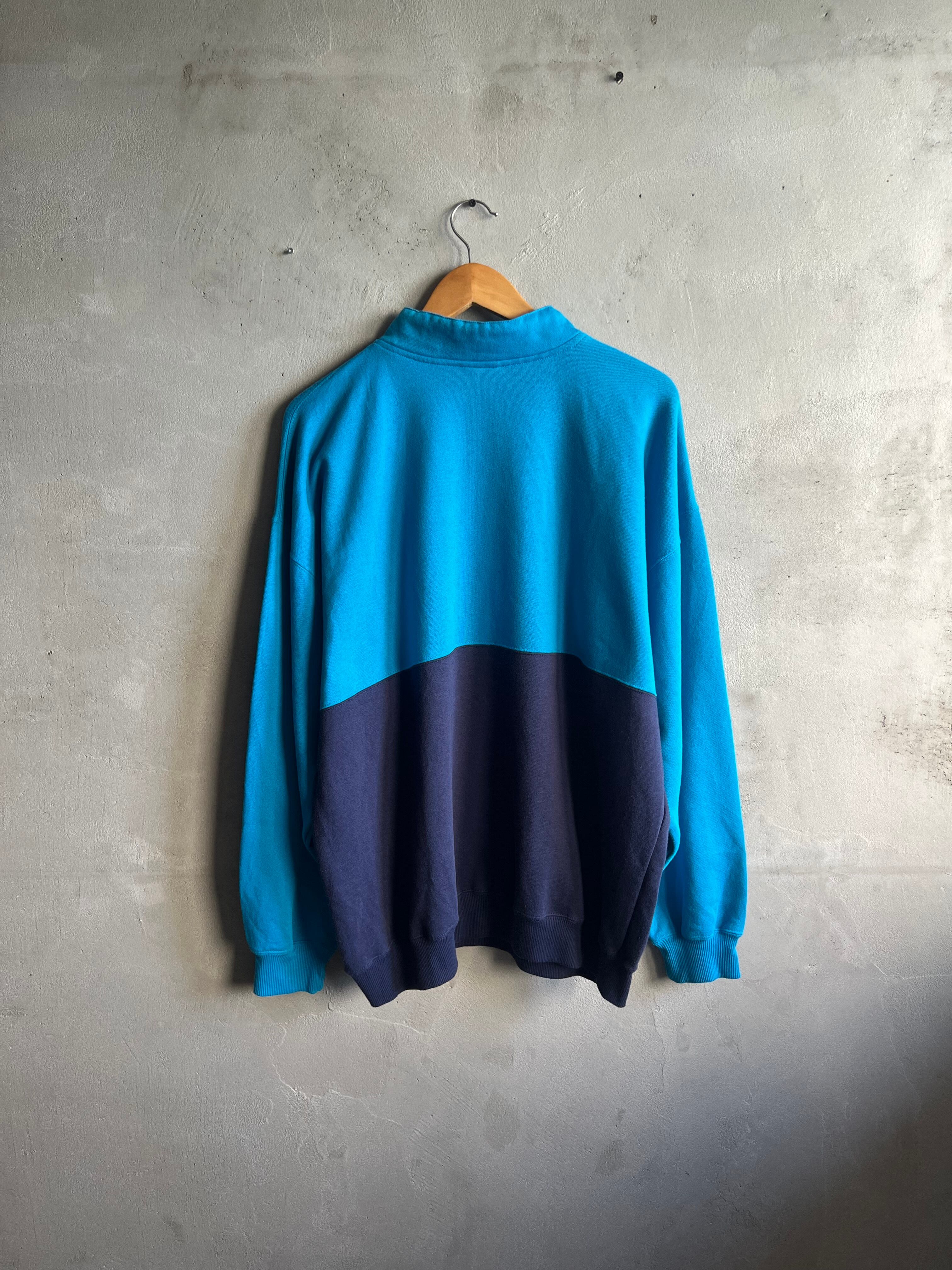 90's~ "CHEETAH" Two-Tone Mock Neck Sweat Shirt