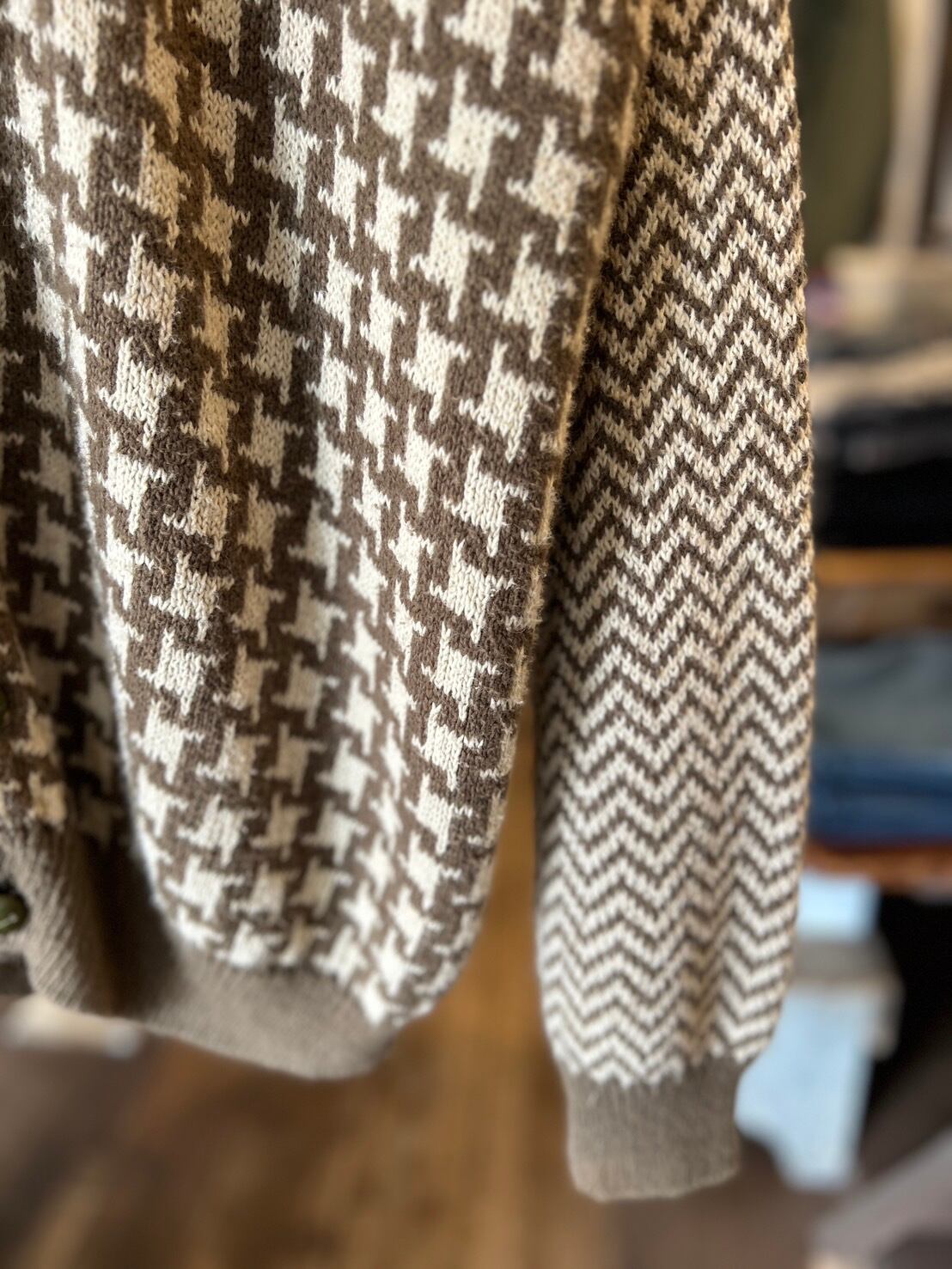 ボディ、アームでパターンの異なる総柄デザイン