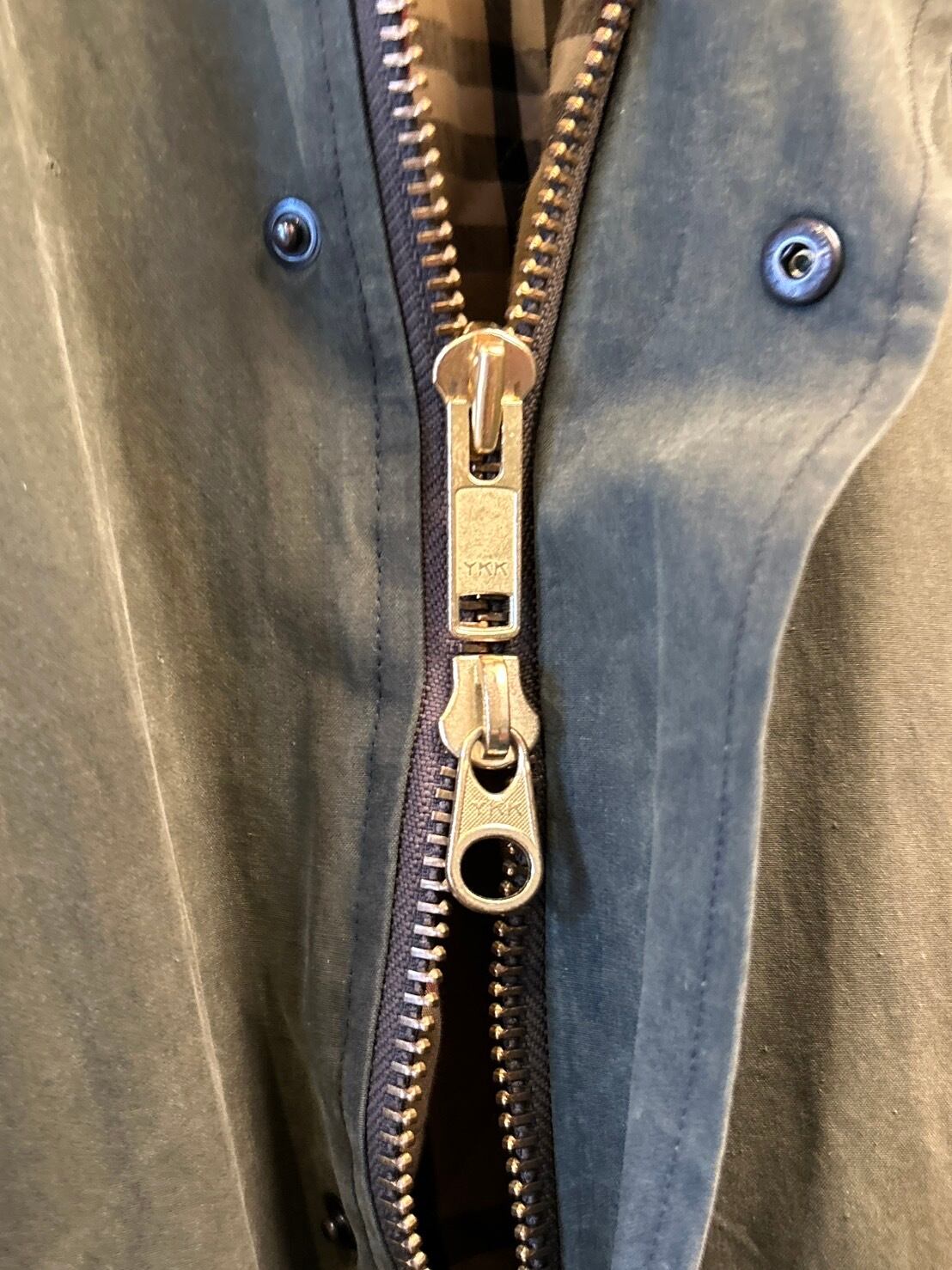 フロントはダブルジップ×スナップボタン