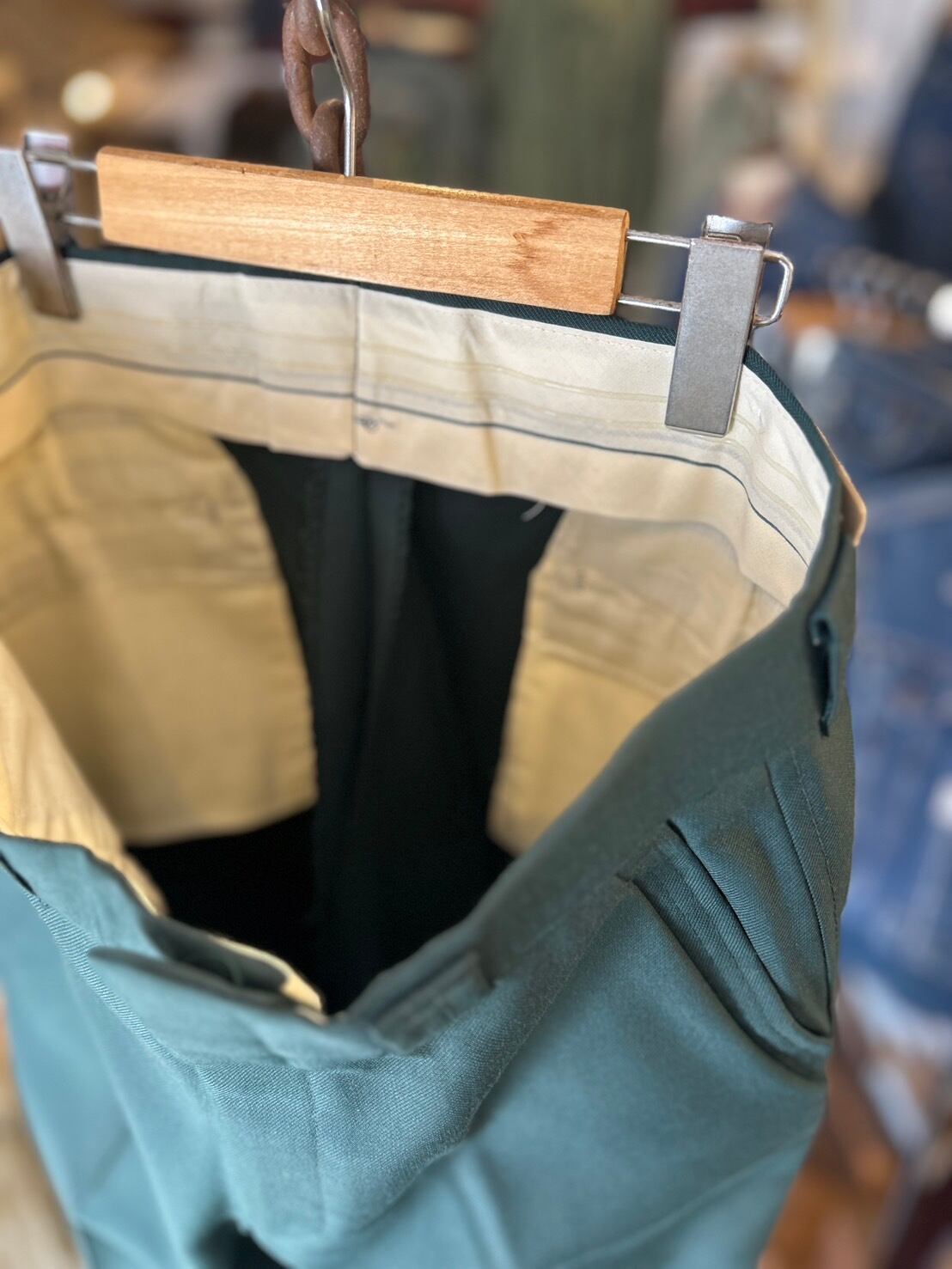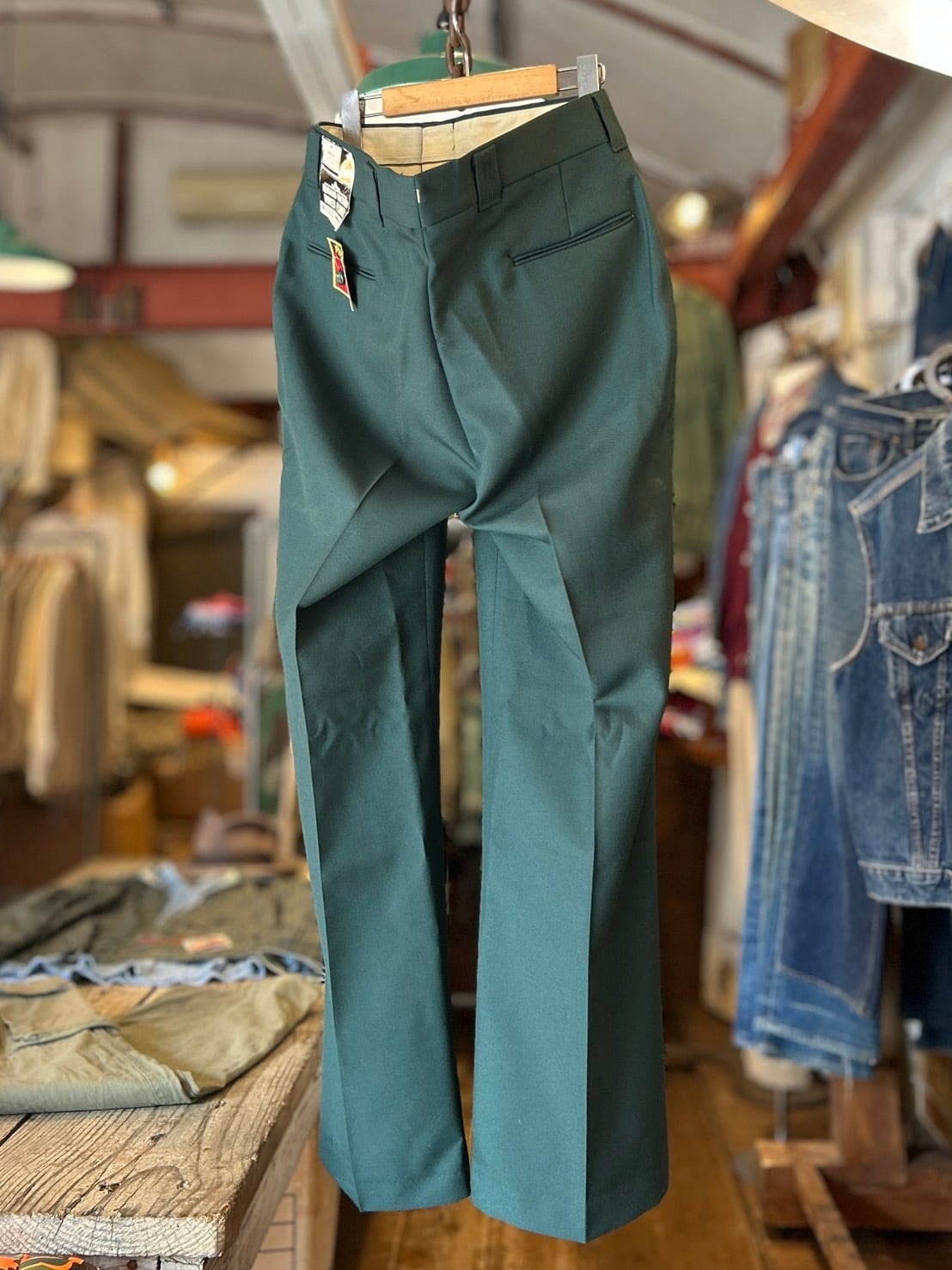 こちらは深みのあるグリーンのフレアスラックス
