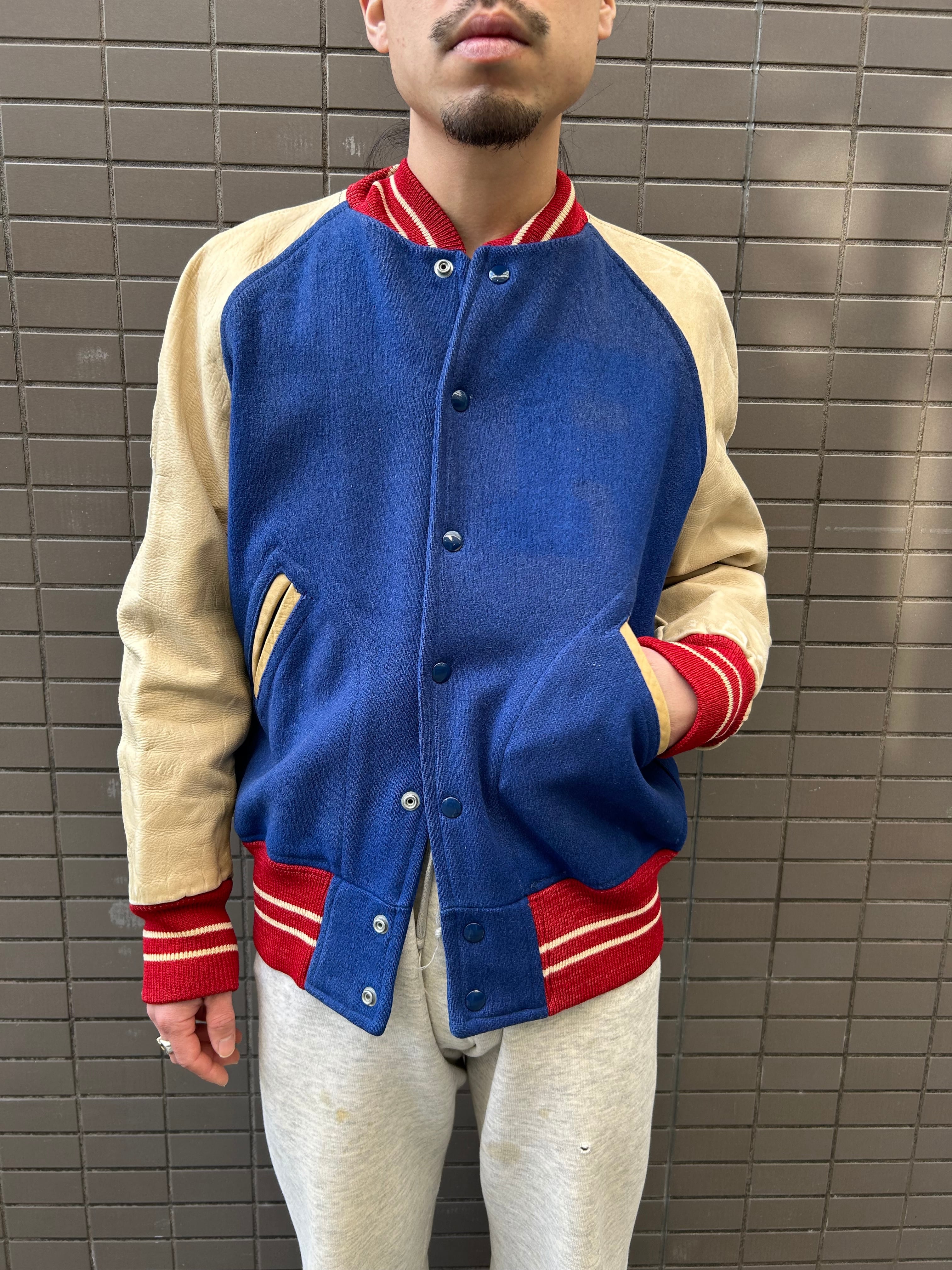 40's- "LOWE & CAMPBELL" wool×leather award jacket