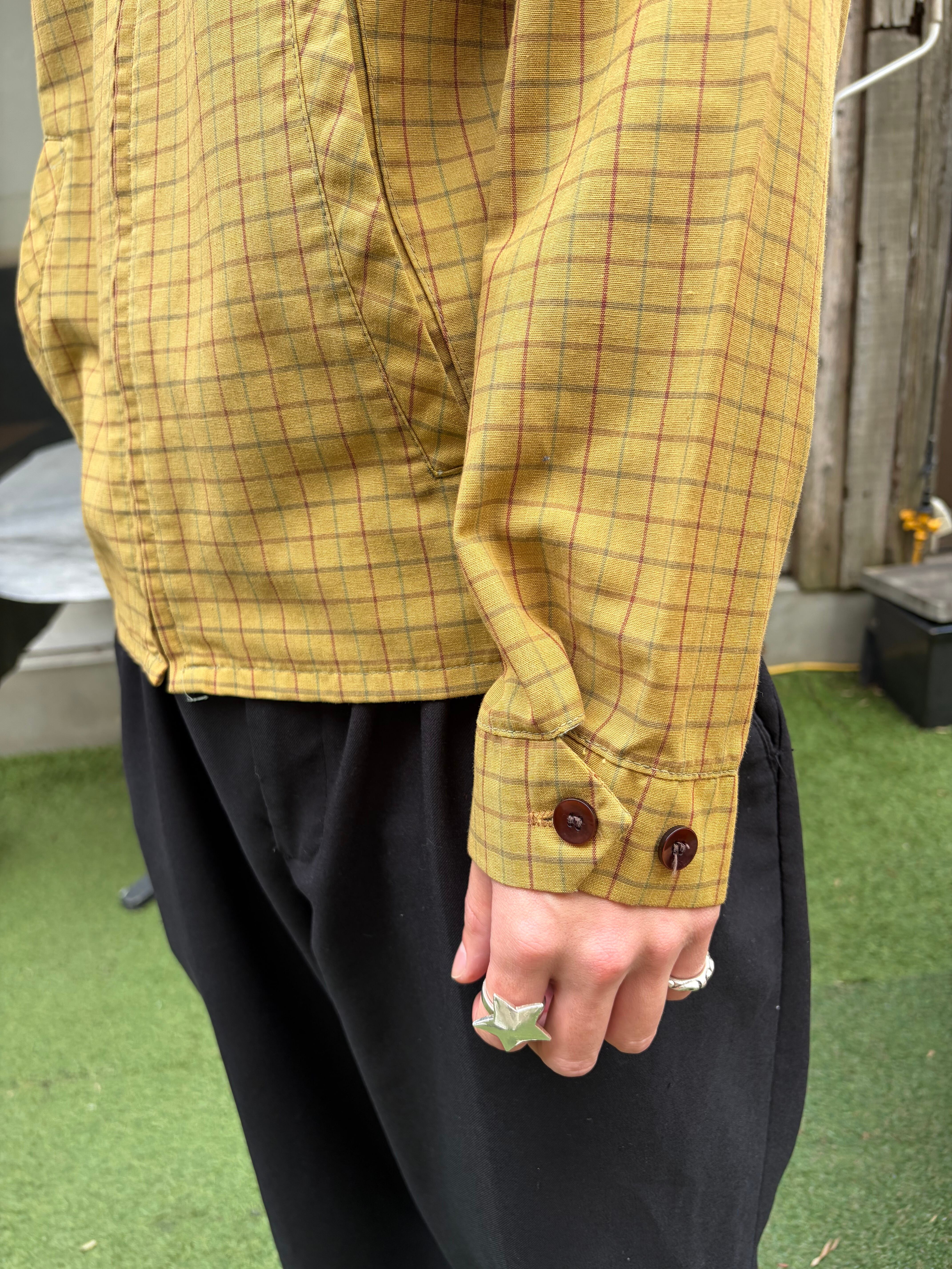 からし色ベースの良いチェック柄