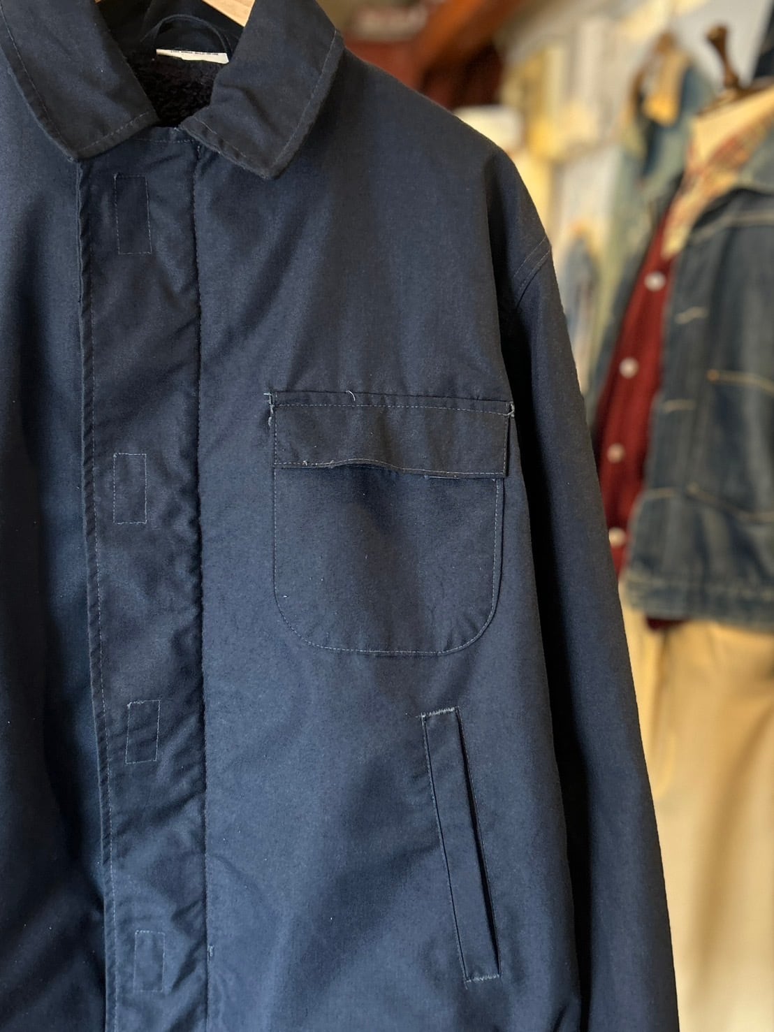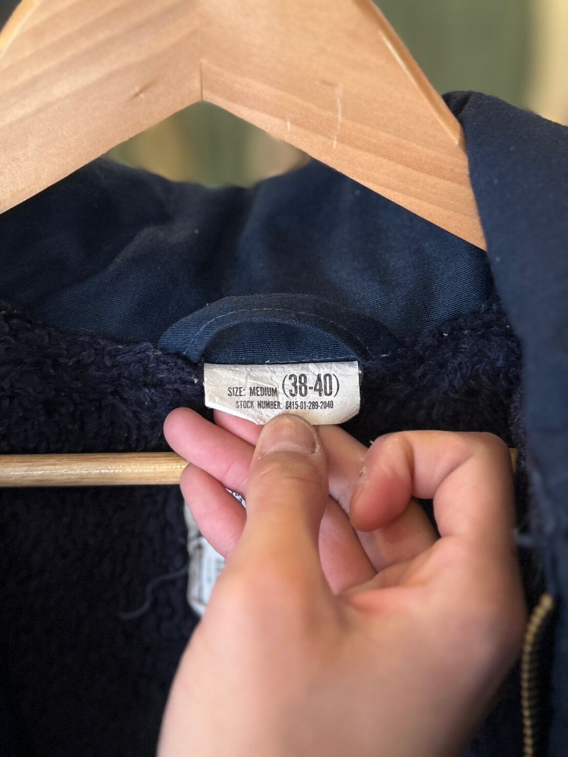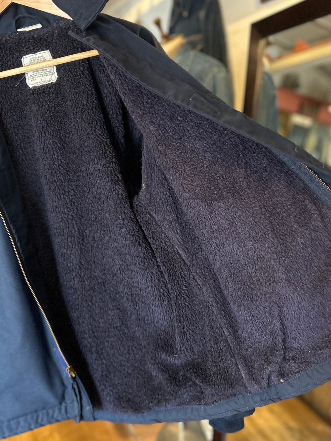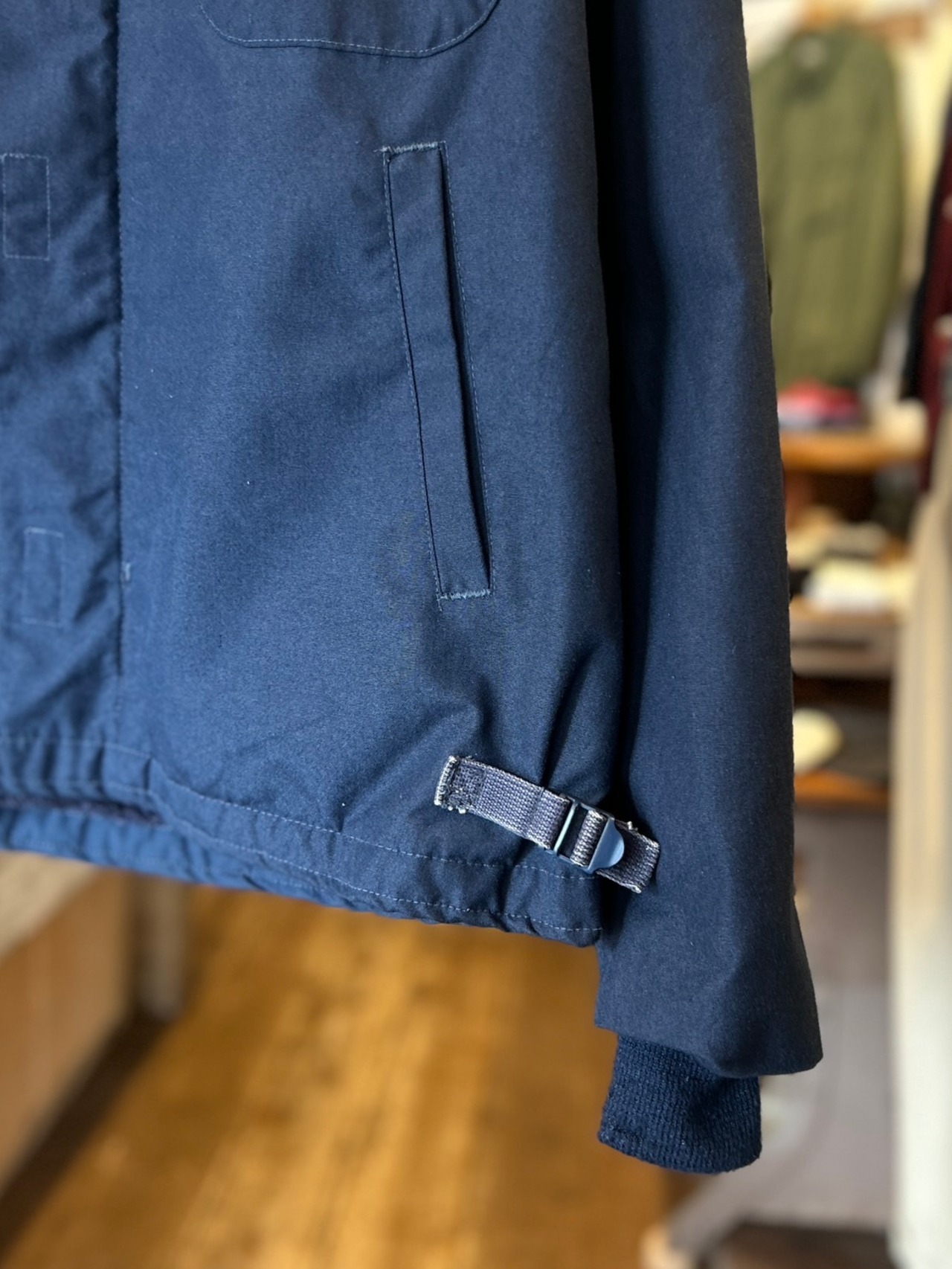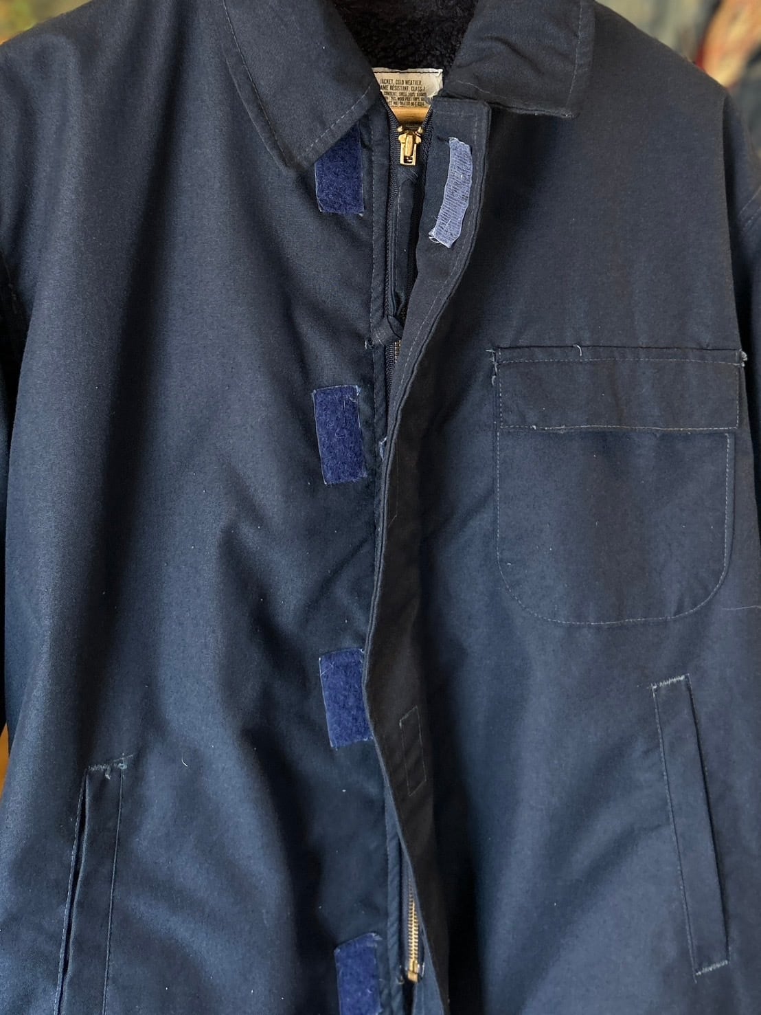 難燃素材のボディとネイビーカラー、マジックテープ仕様の前立てがA-2との大きな違い