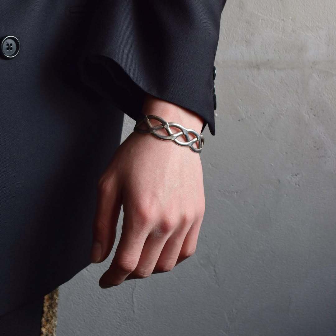 三つ編みのようなデザインのシルバーバングル