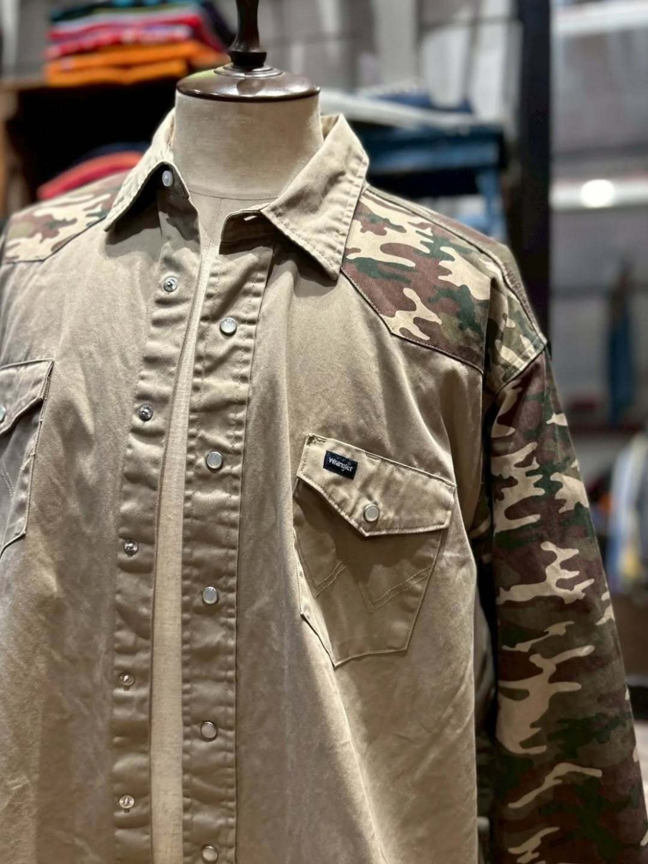 【Wrangler】 90's woodland camo western shirt