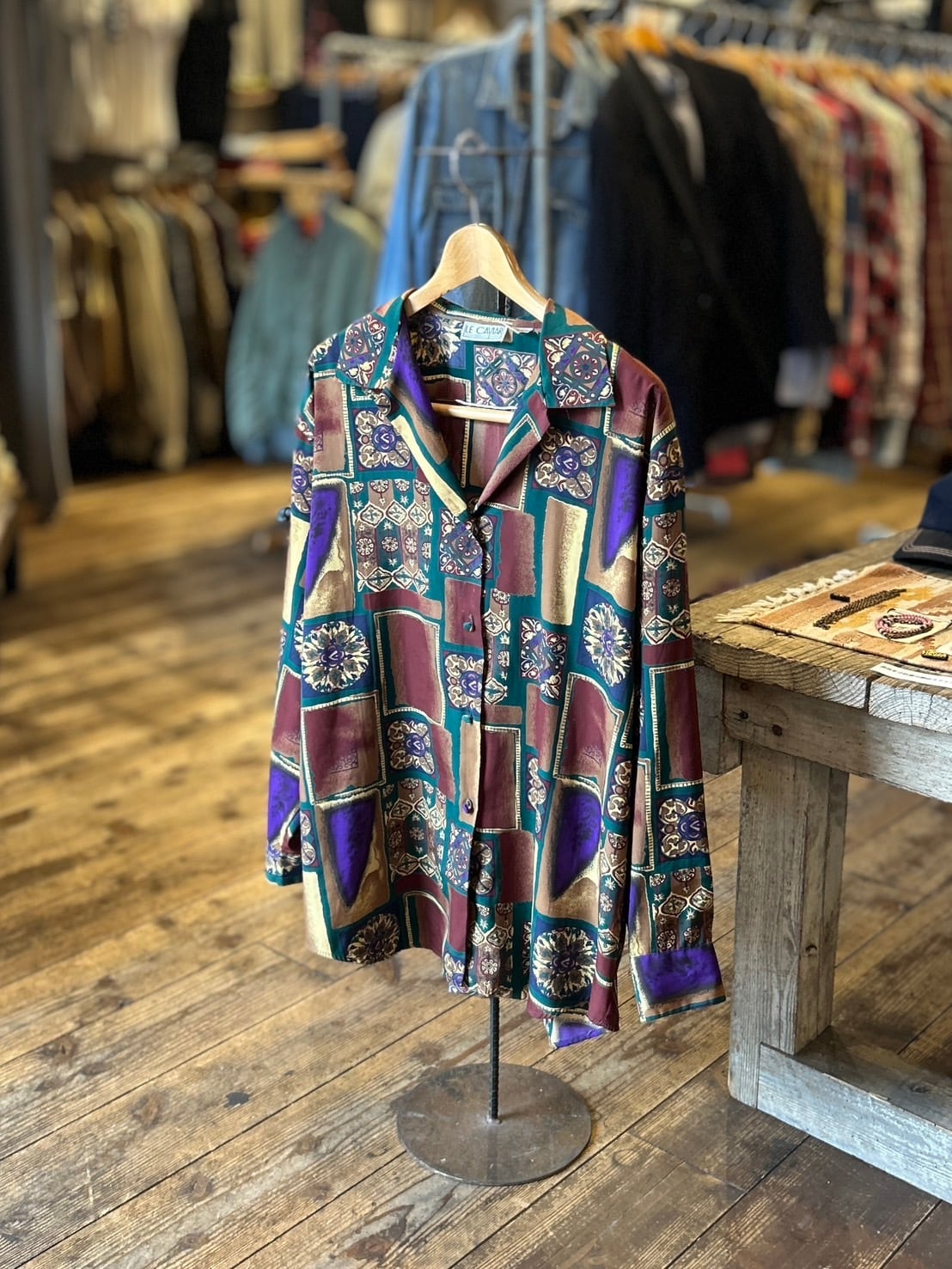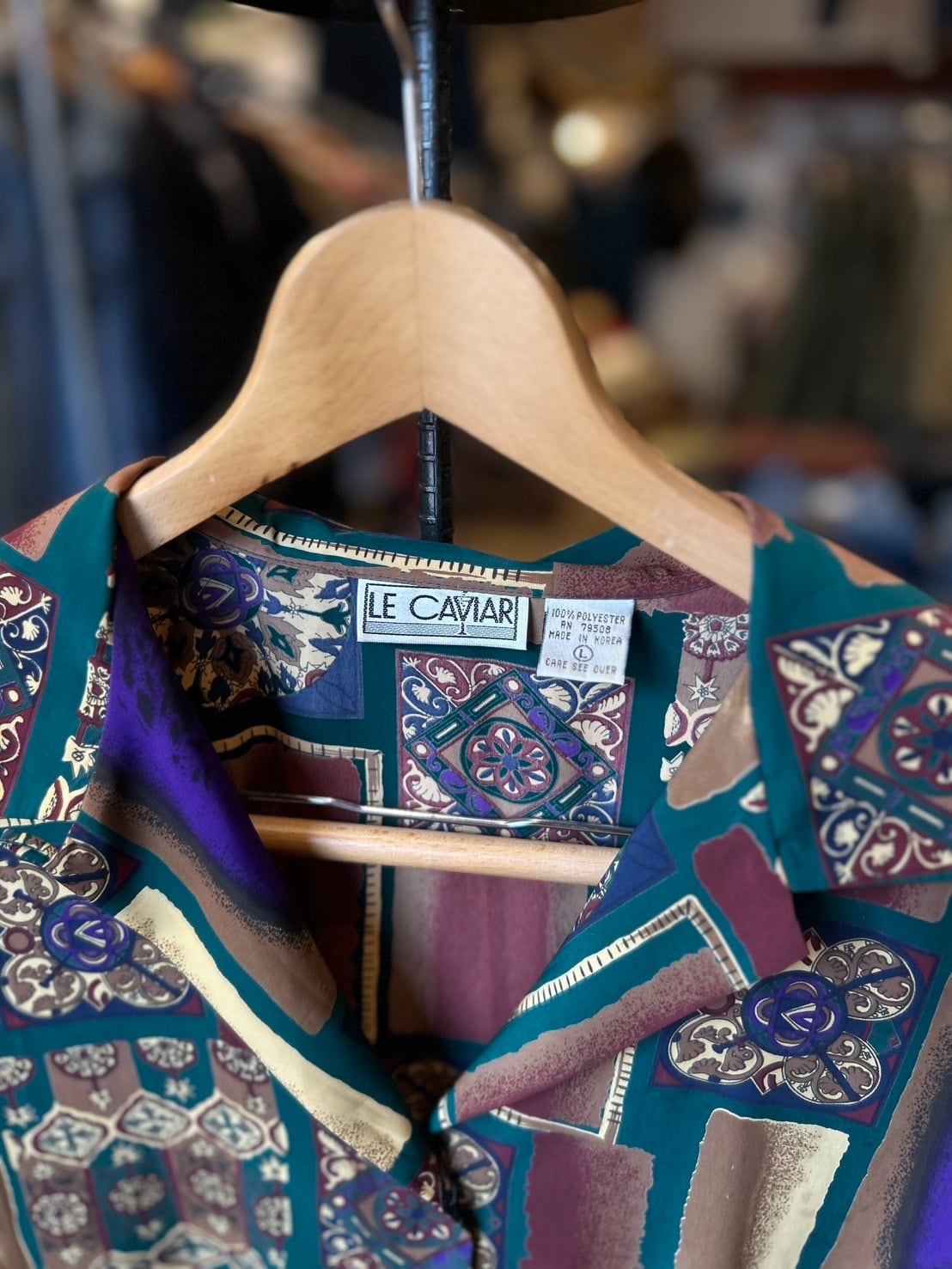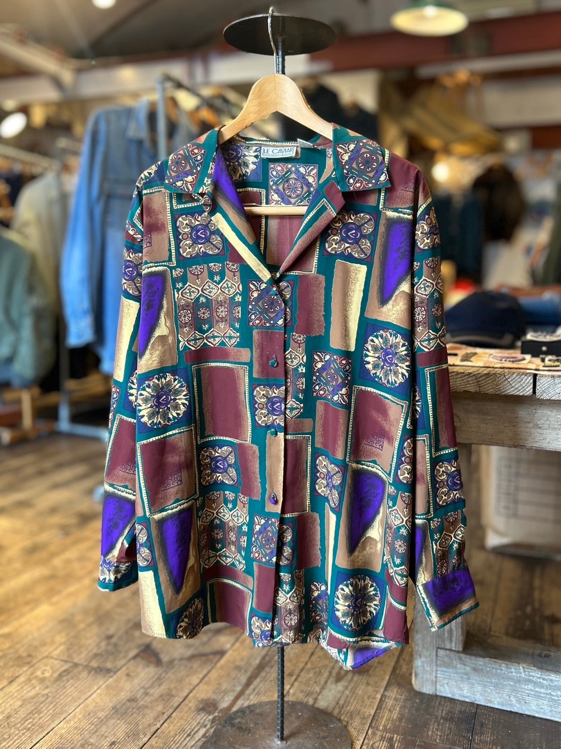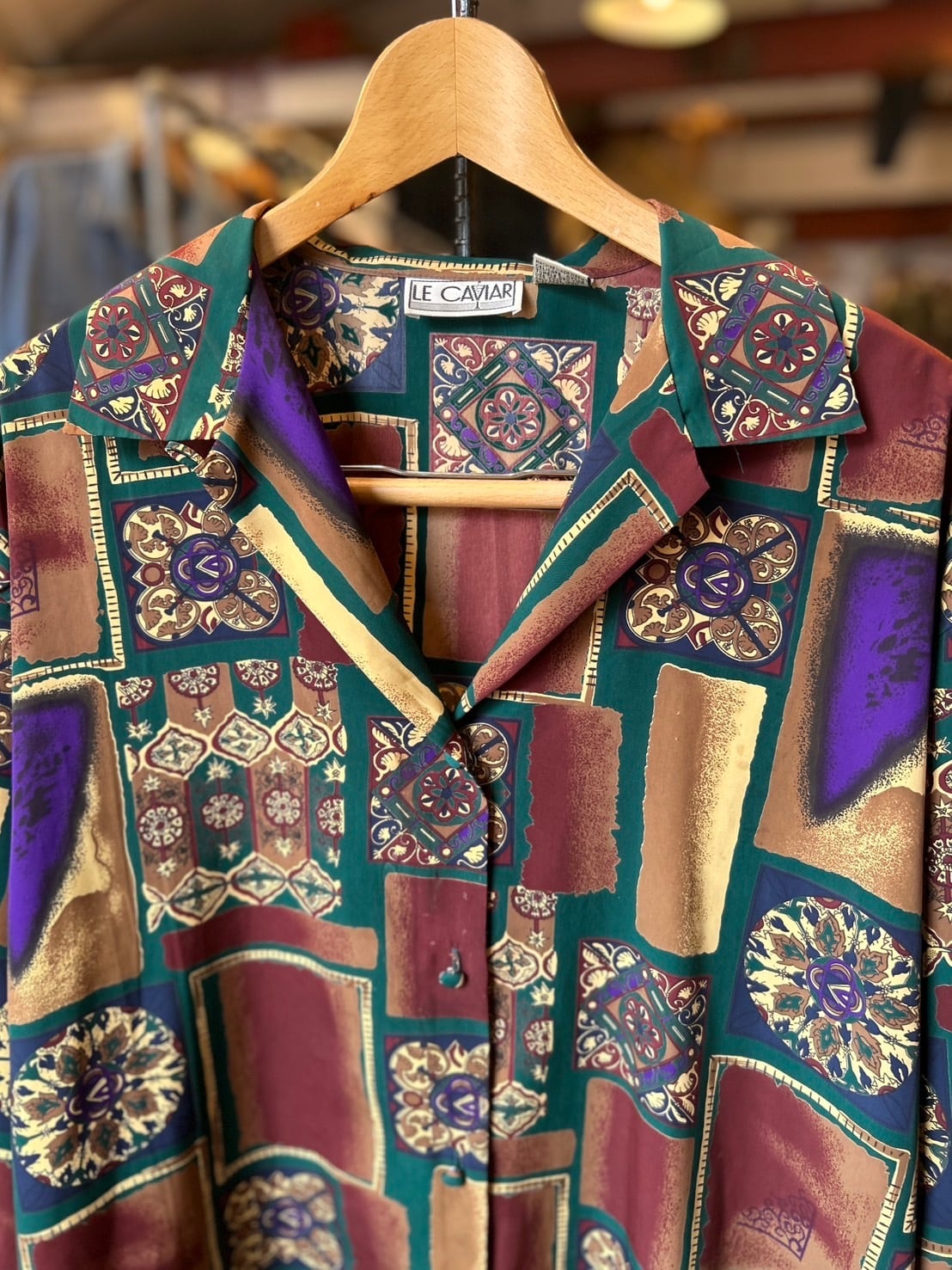 【LE CAVIAR】 ~90's All-over Pattern Open Collar Shirt , Good Design