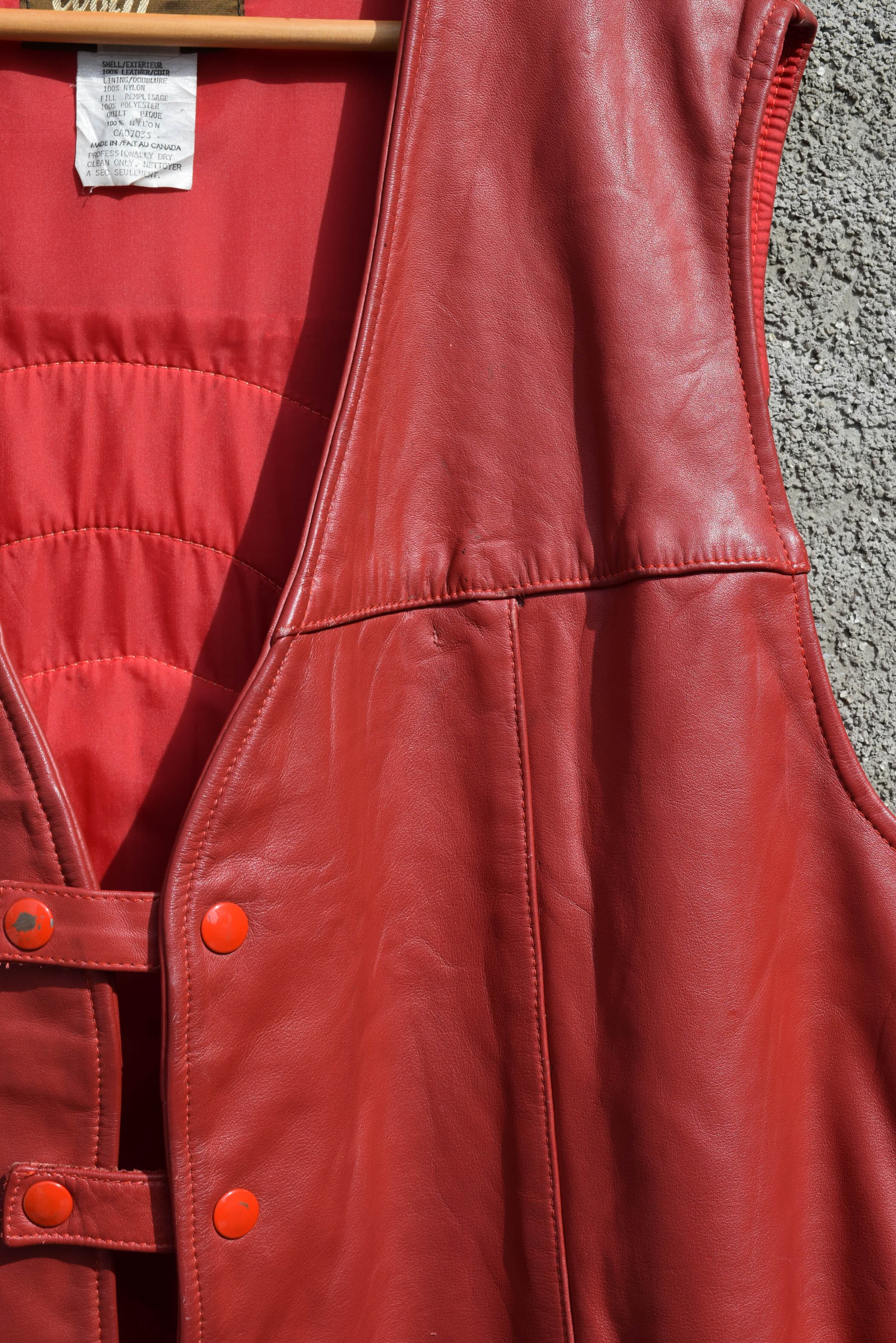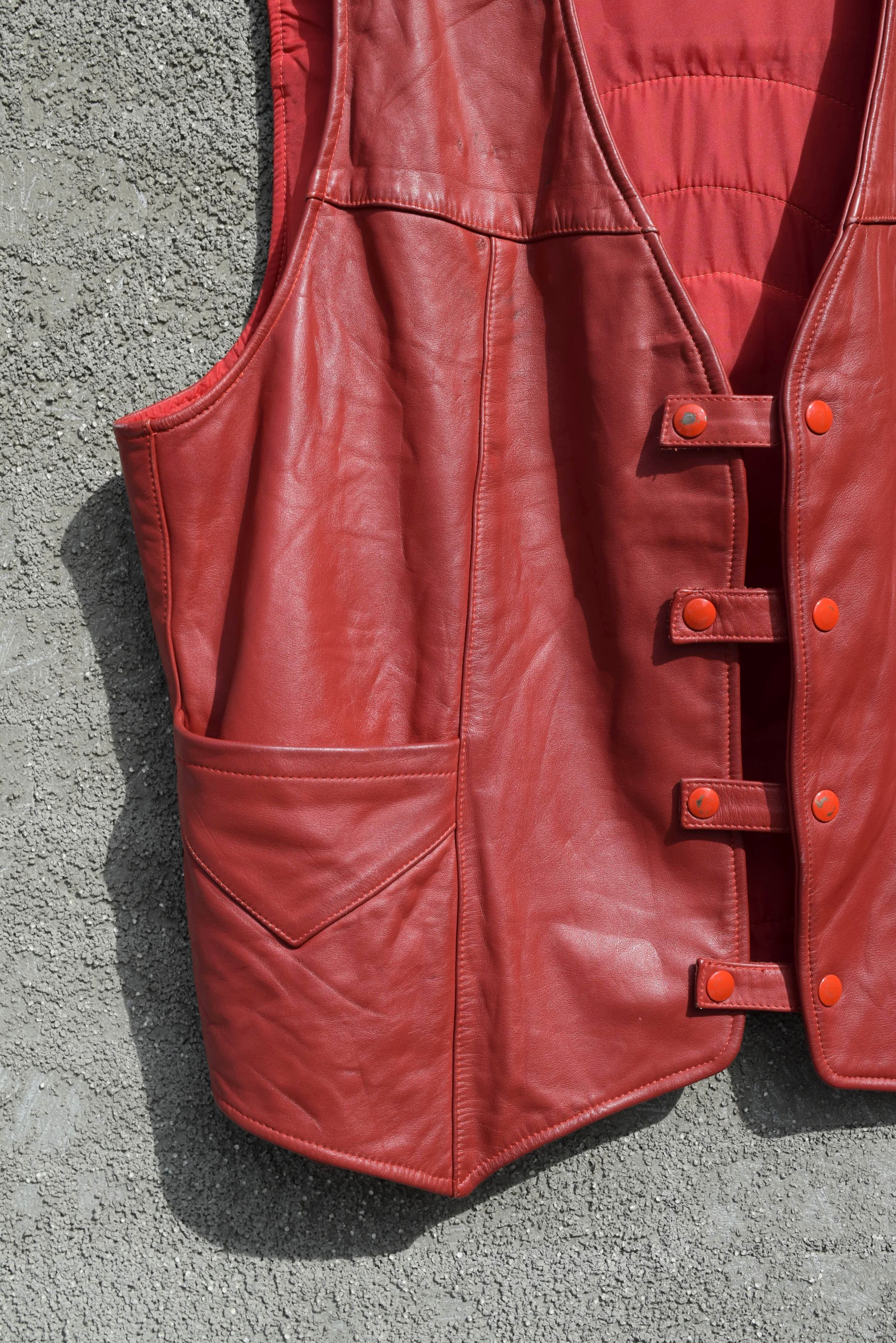 レザーベストでは珍しい深みのある赤ボディ。