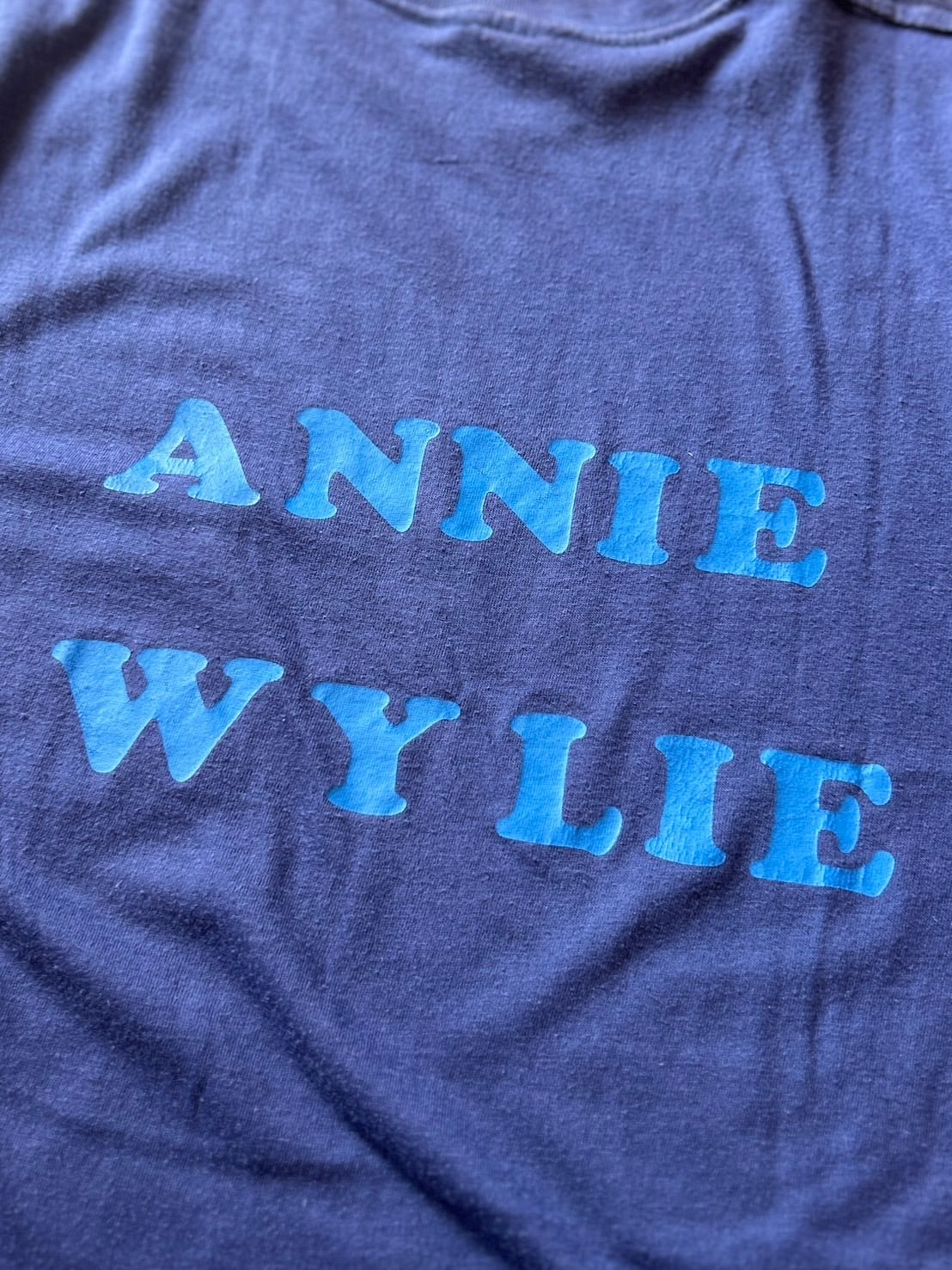バックには"ANNIE WYLIE"のプリントが水色で入ってます