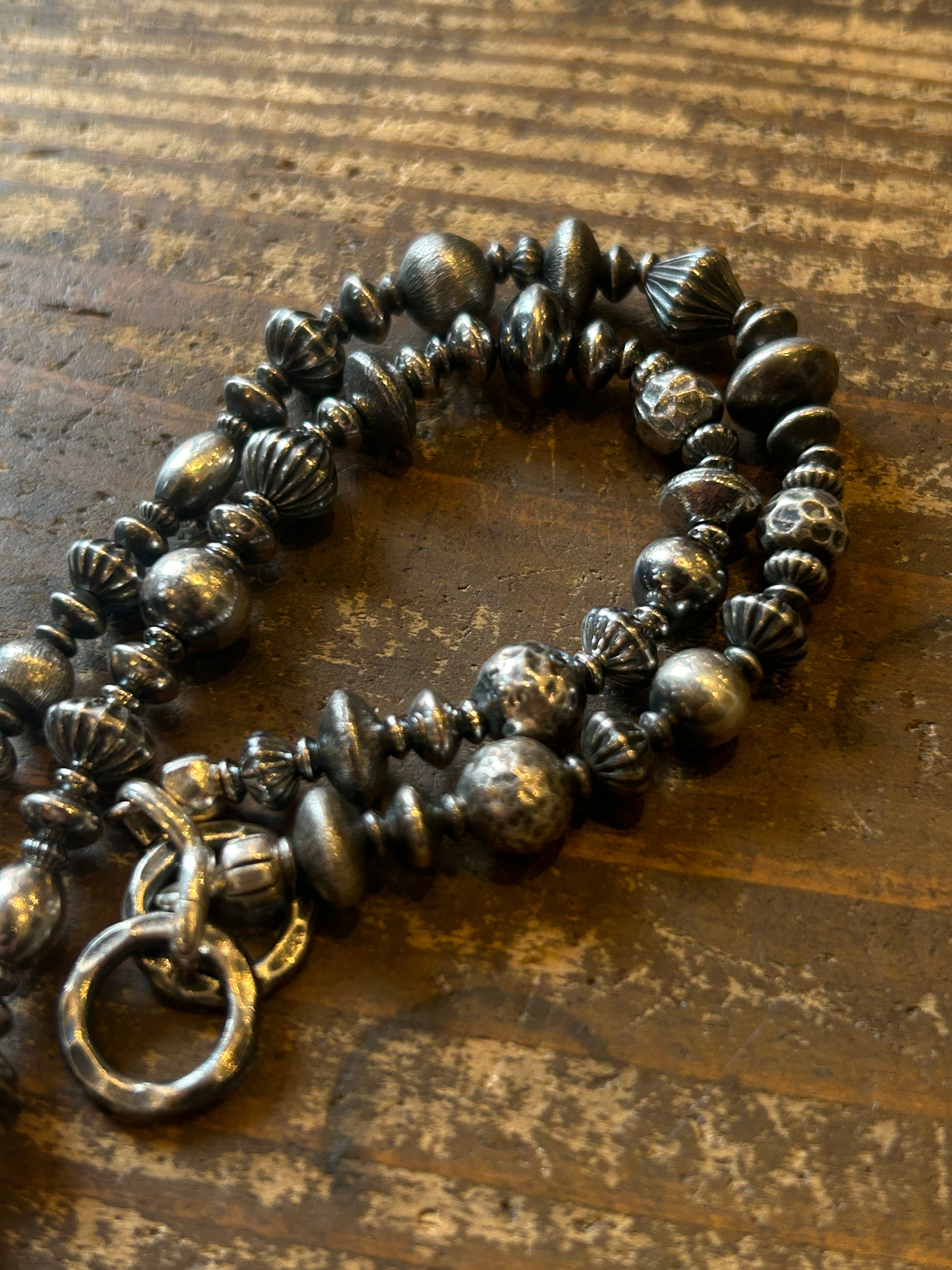 表情の違うシルバービーズを組み合わせて作成された逸品