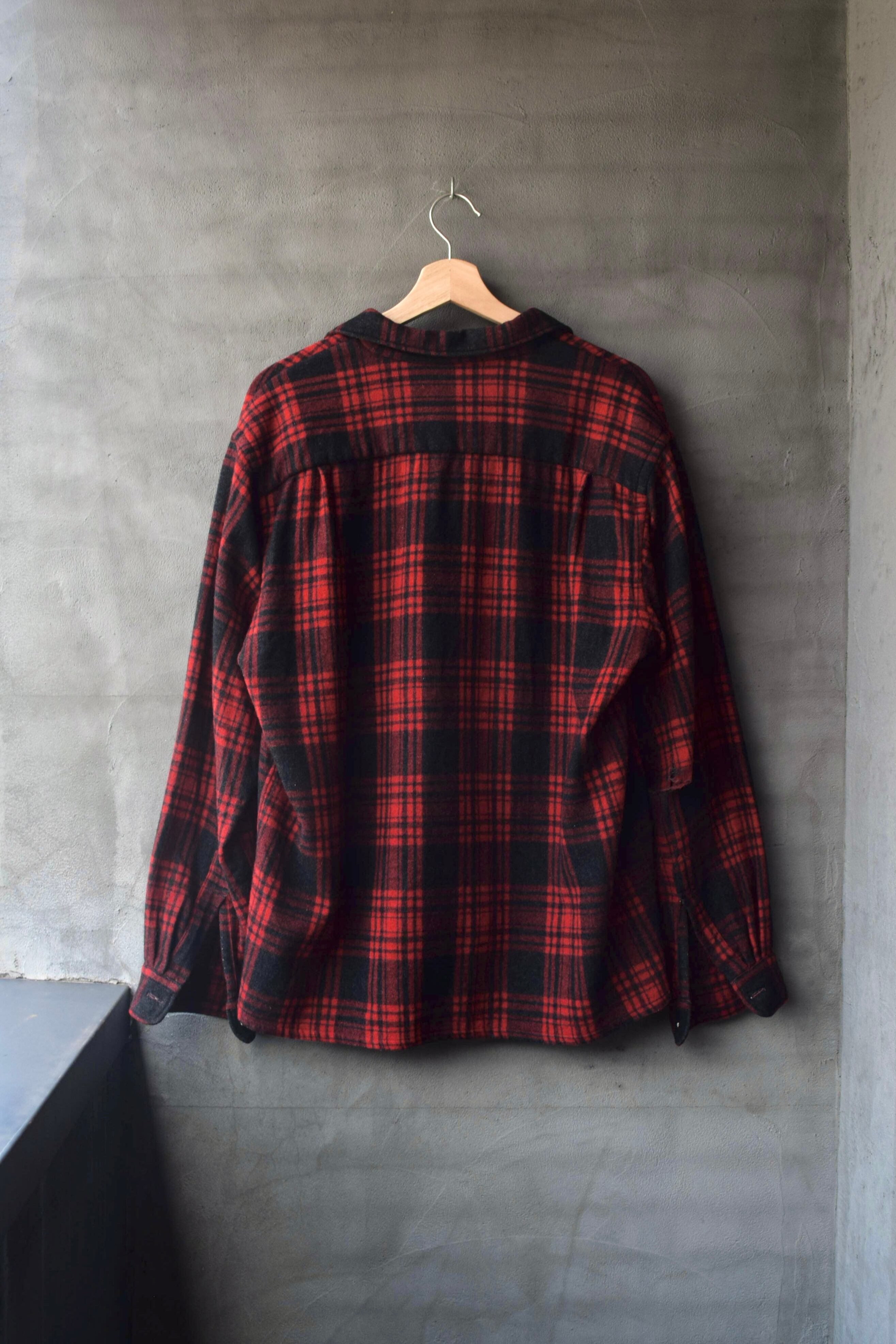 50~60's "Eagle Earth" Distressed Wool Check Open Collar shirt