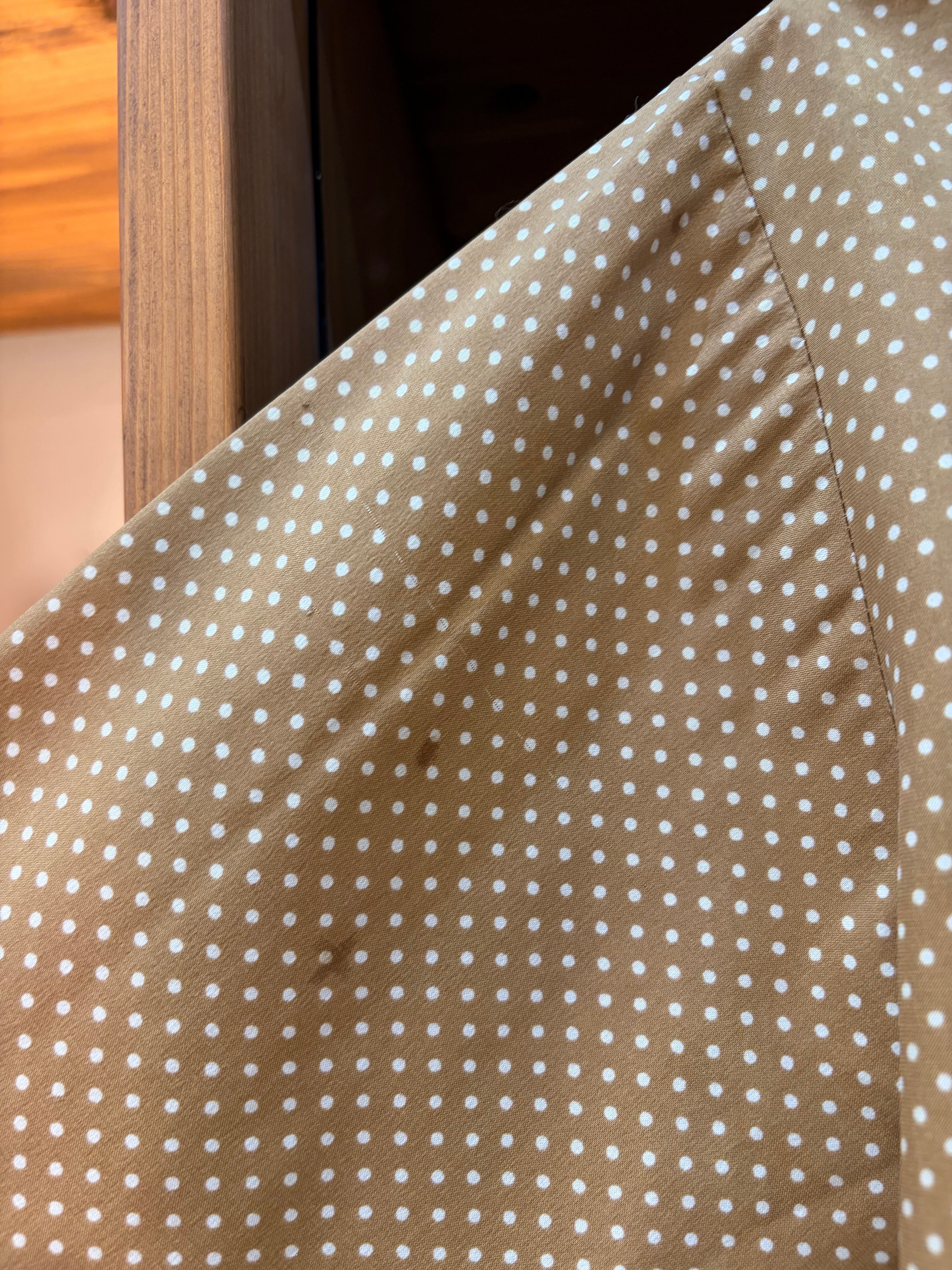 からし色に白のドット柄