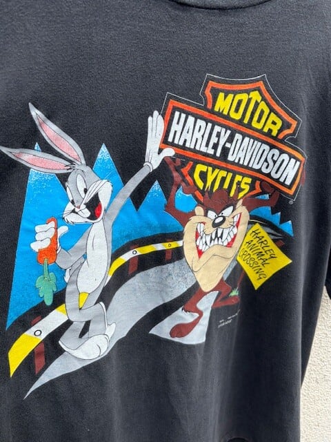 HARLEY-DAVIDSONとLooney Tunesのバックス・バニーとタスマニアン・デビルがコラボしたTシャツ