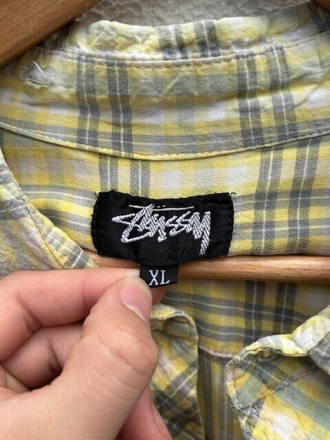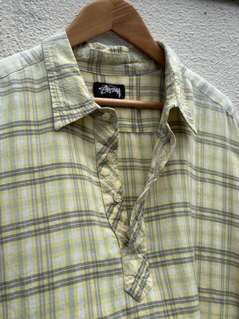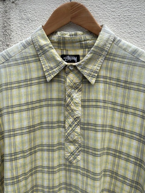 80's "STUSSY" check pullover s/s shirt made in USA