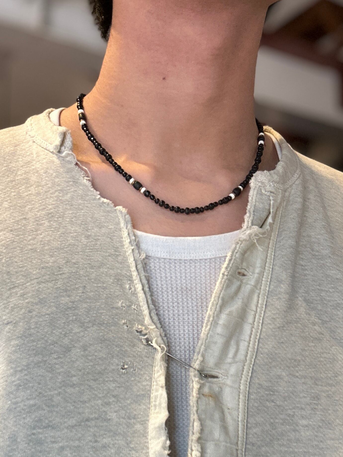 ネックレス時には、チェーン部分が15cm程あるので、長さを変えて楽しめます。