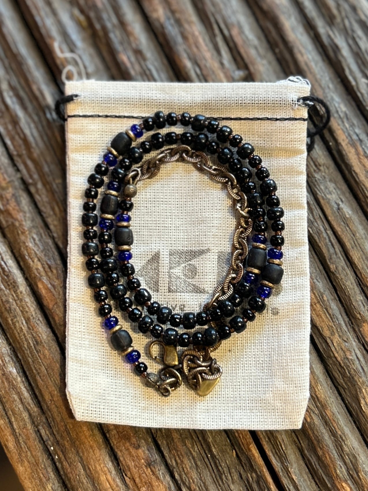【MEL.】 2way necklace / bracelet , Black×Blue×Black